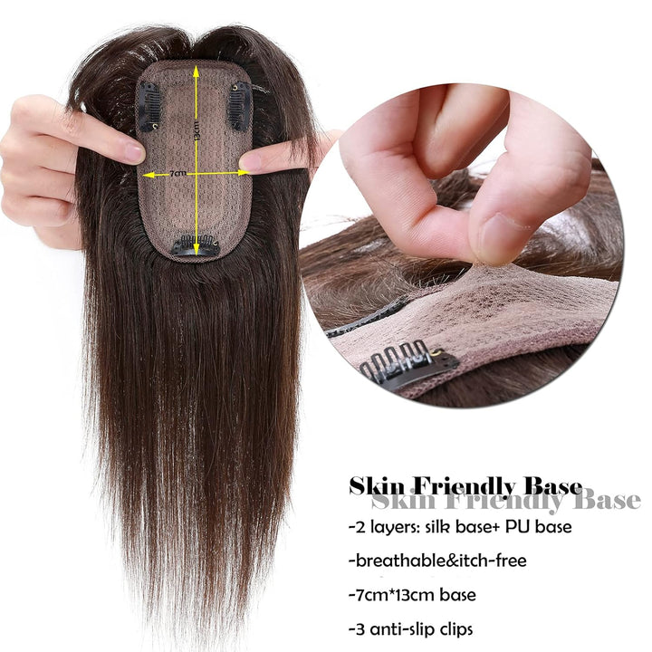 - 7x13cm Silk-Base—Ca. 12cm lang Pony, sehr realistisch und gasdurchlässig. Perfekte Wahl, für Haarausfall, oder weisse Haare und hohen Haaransatz abzudecken.