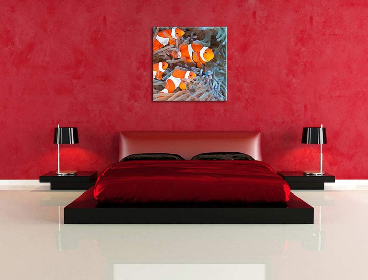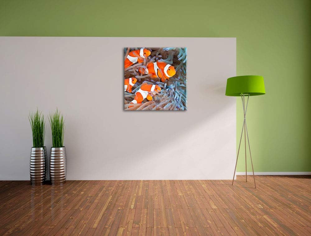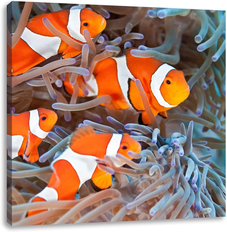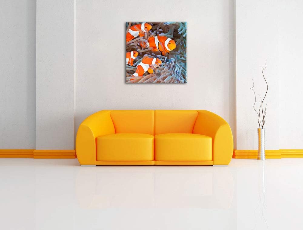 Clownsfische in Anemone, Format: 70x70 auf Leinwand, XXL riesige Bilder fertig gerahmt mit Keilrahme