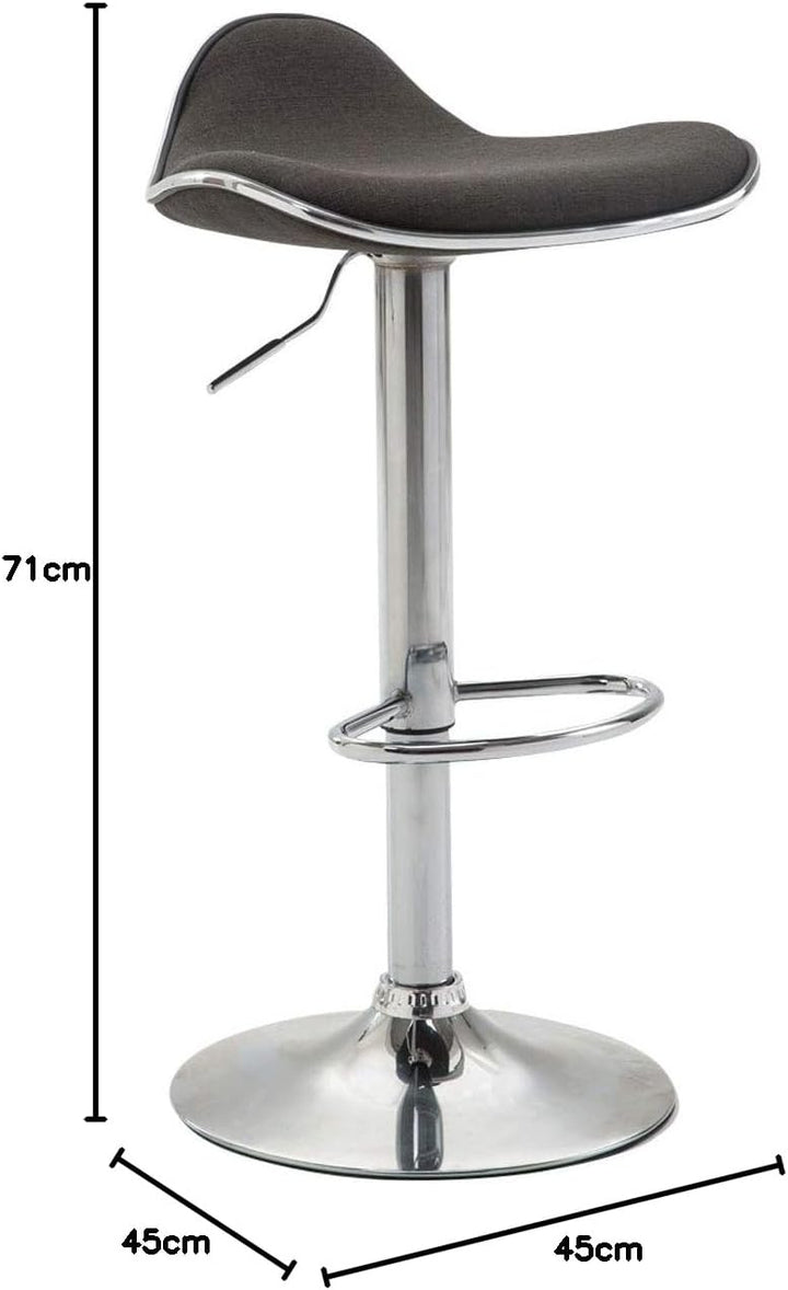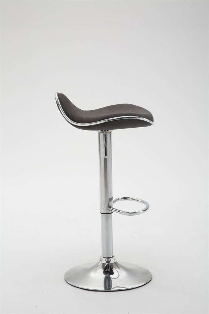 - Dieser elegante Barstuhl verfügt über einen gewölbten bequem gepolsterten Sitz mit Stoffbezug und einen robusten Standfuss aus Metall in Chrom-Optik. Der Sitz ist so gestaltet, dass er sich Ihrer Körperform anpasst.