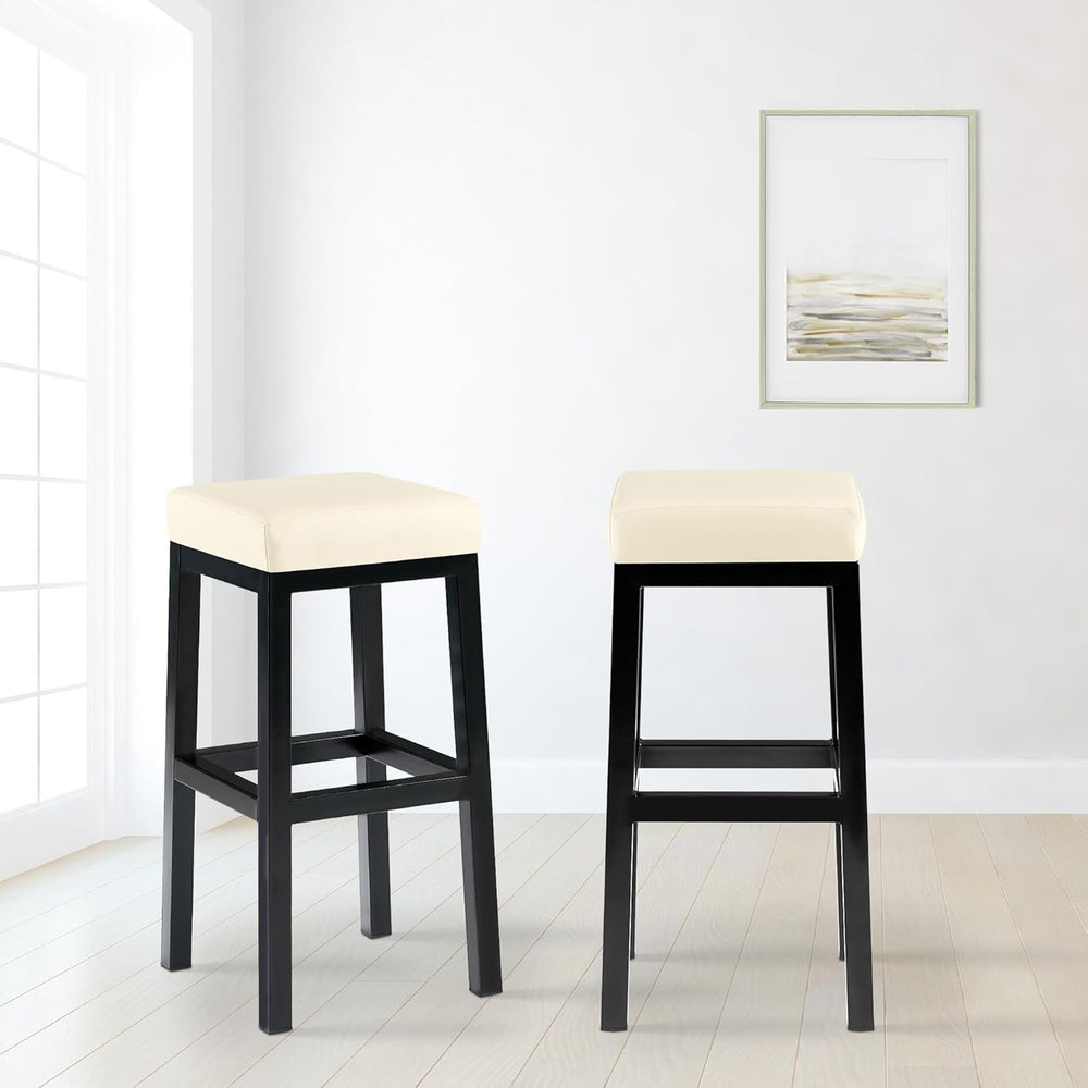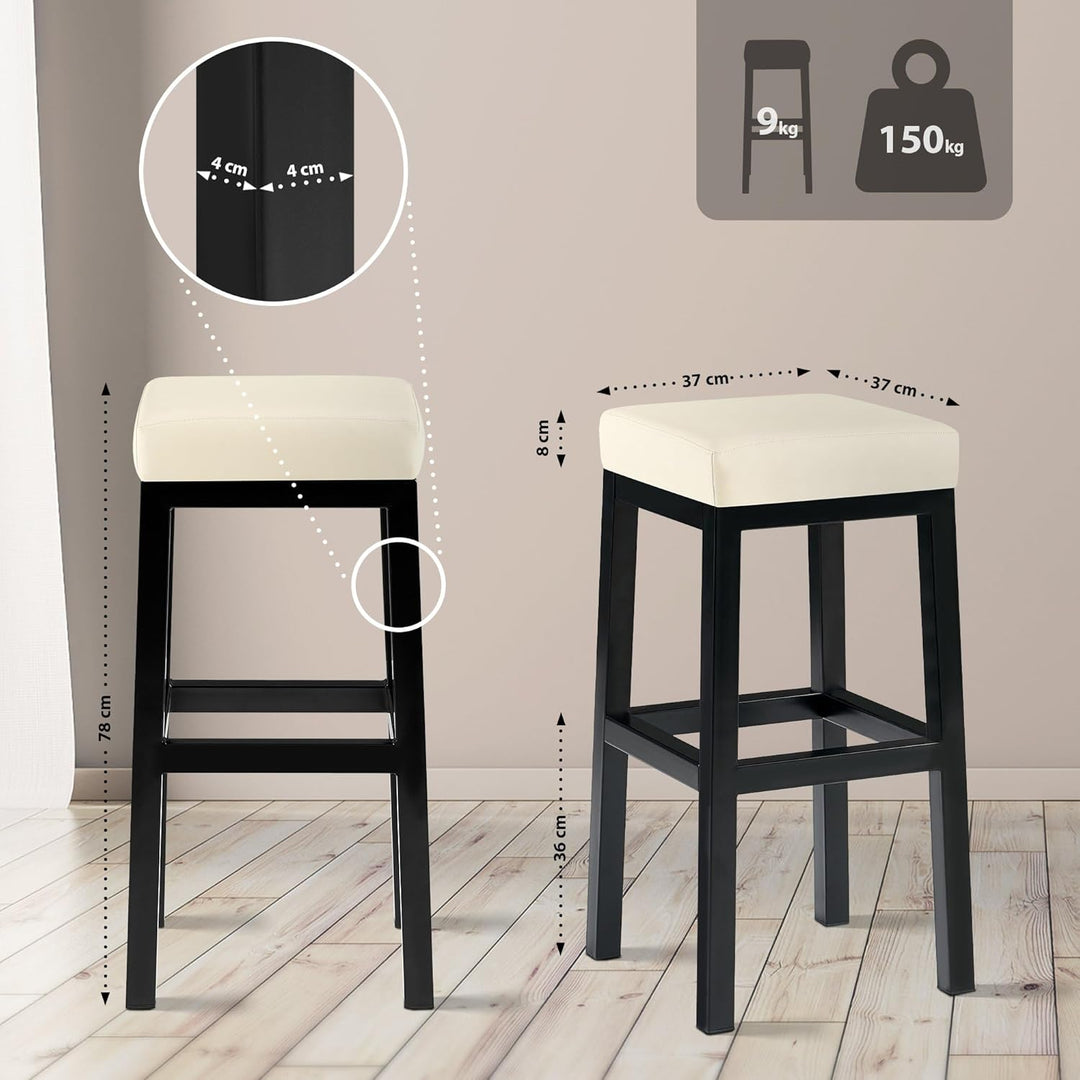 - Die Sitzfläche des Hockers ist bequem gepolstert und mit pflegeleichtem Kunstleder überzogen. Der Sitz lässt sich mühelos mit einem feuchten Tuch säubern. Der Tresenhocker nimmt wenig Platz in Anspruch und ist besonders in kleineren Räumen