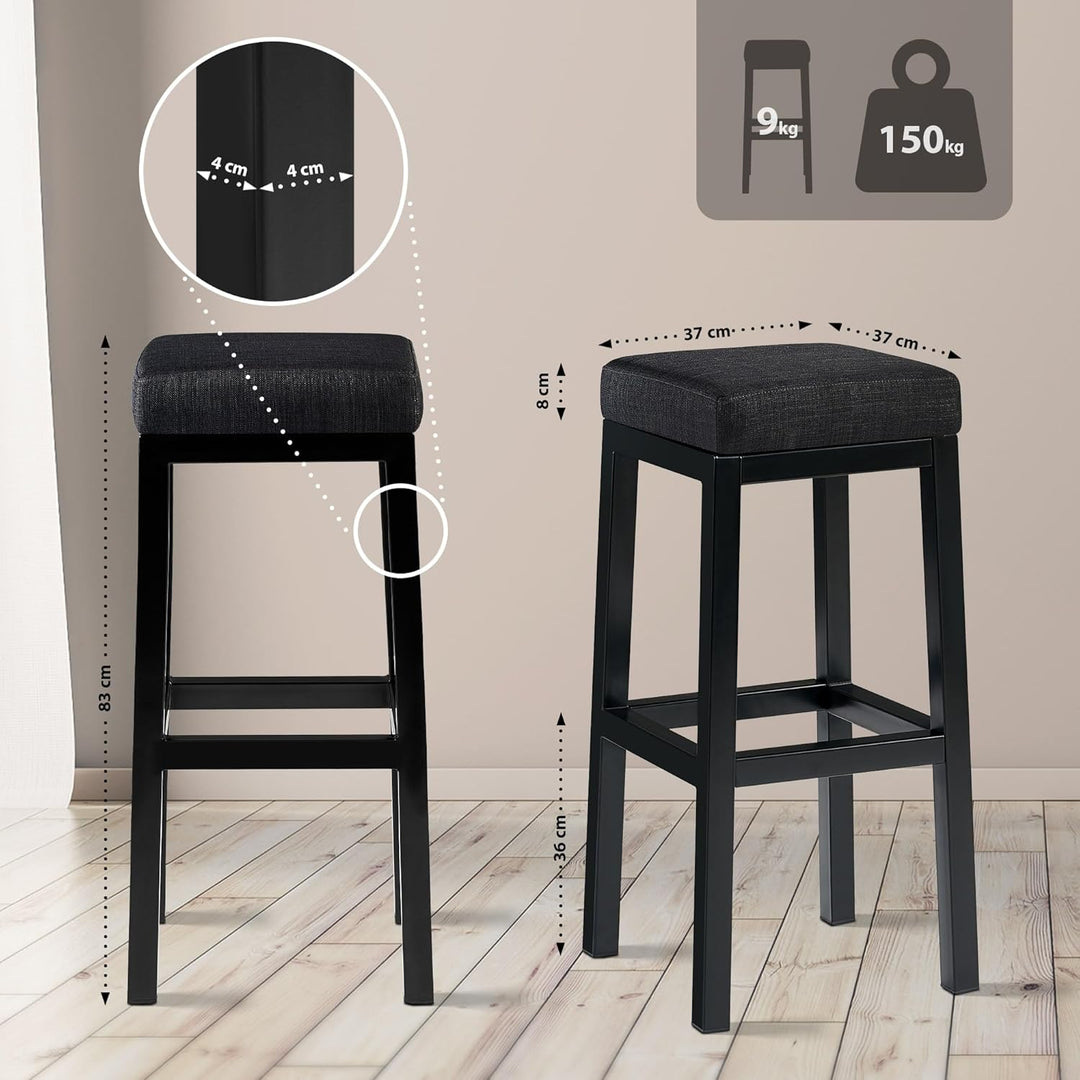 - Ca. Masse: Gesamthöhe: 85 cm I Gesamtbreite: 41 cm I Gesamttiefe: 41 cm I Sitzhöhe: 85 cm I Sitzfläche: 38 x 38 cm I Polsterdicke: 8 cm I Breite Gestell: 4 cm