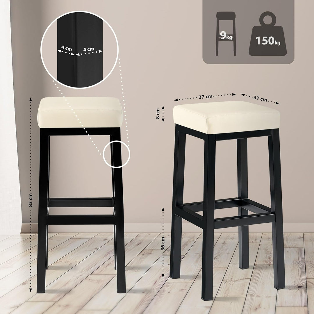 - Dieser Thekenhocker ist durch ein solides 4-Fuss Untergestell aus Metall besonders robust und standsicher. Das Gestell verfügt über eine integrierte Fussstütze. Diese unterstützt eine aufrechte und bequeme Sitzhaltung und beugt dadurch