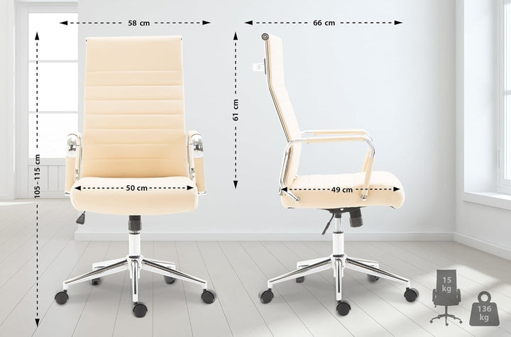 - MATERIAL: Weiche Polsterung mit strapazierfähigem Kunstleder-Bezug I Bürostuhl steht auf stabilem Metall-Gestell in Chrom-Optik oder Schwarz I mit fünf drehbaren Leichtlaufrollen ausgestattet