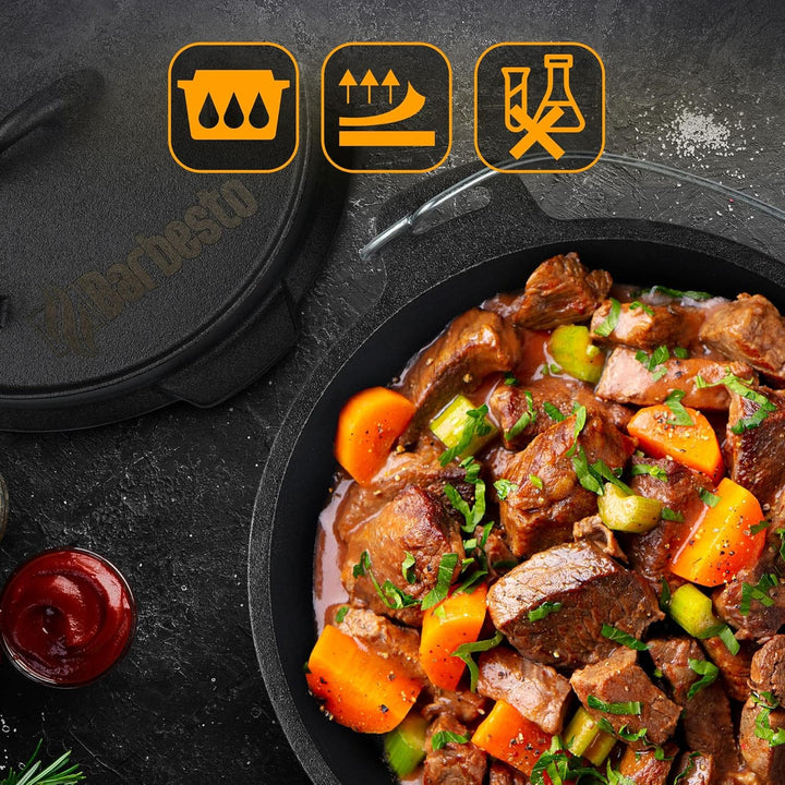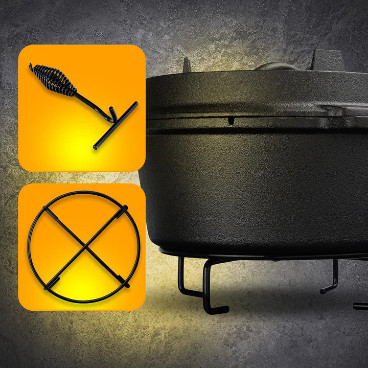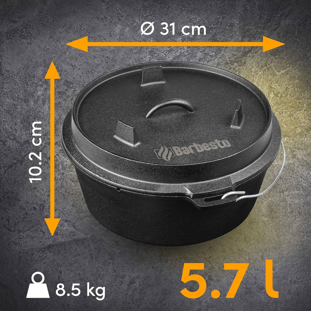 - VIELSEITIG: Dutch Oven geeignet zum Kochen, Grillen & Backen sowie für Camping etc. I Nutzung in offenem Feuer, im Backofen und auf Gasherd oder Kochfeld möglich I kann am Griff übers Feuer gehängt werden