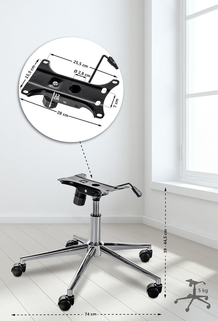 - KOMPATIBILITÄT: Dieses Gestell bietet Ersatz für diverse Bürostuhle mit entsprechenden Abmessungen. Es eignet sich für viele Computerstühle, sowie Drehstühle mit einer Sitzaufnahme von 15,5 x 25,5 cm Lochabstand.