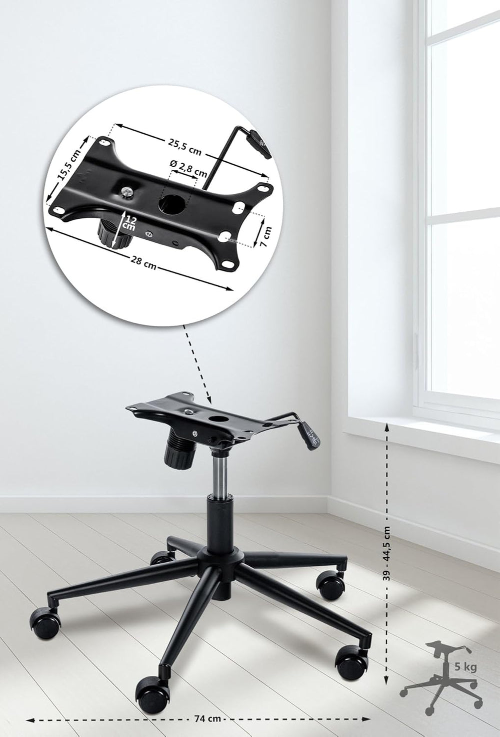 - ERSATZ: Ein Neukauf ist nicht immer nötig. Dieses Gestell ermöglicht Ihnen, Ihren Bürostuhl wieder herzustellen. Es dient als Ersatz für Bürostuhlgestelle mit einem Lochabstand von 15,5 x 25,5 cm.