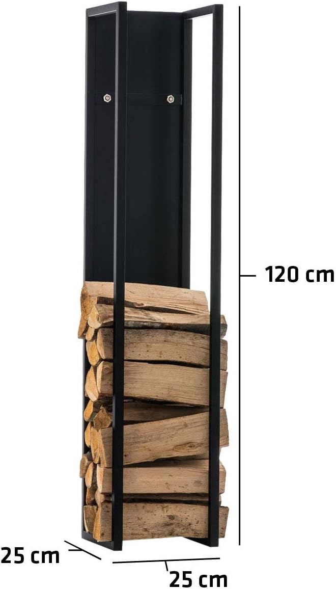 - Der Ständer ist aus Metall gefertigt und sehr robust. Durch die schlichte Form und die neutrale Farbgebung (schwarz matt oder weiss matt) lässt sich das Brennholzregal in nahezu alle Wohnräume integrieren.
