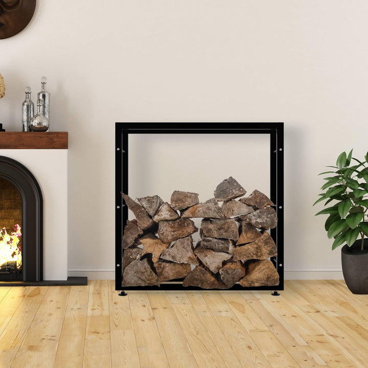 - Das Gestell ist aus schwarzem Metall gefertigt und sehr robust. Durch die schlichte Form und die neutrale Farbgebung lässt sich das Brennholzregal in nahezu alle Wohnräume integrieren.