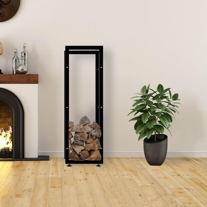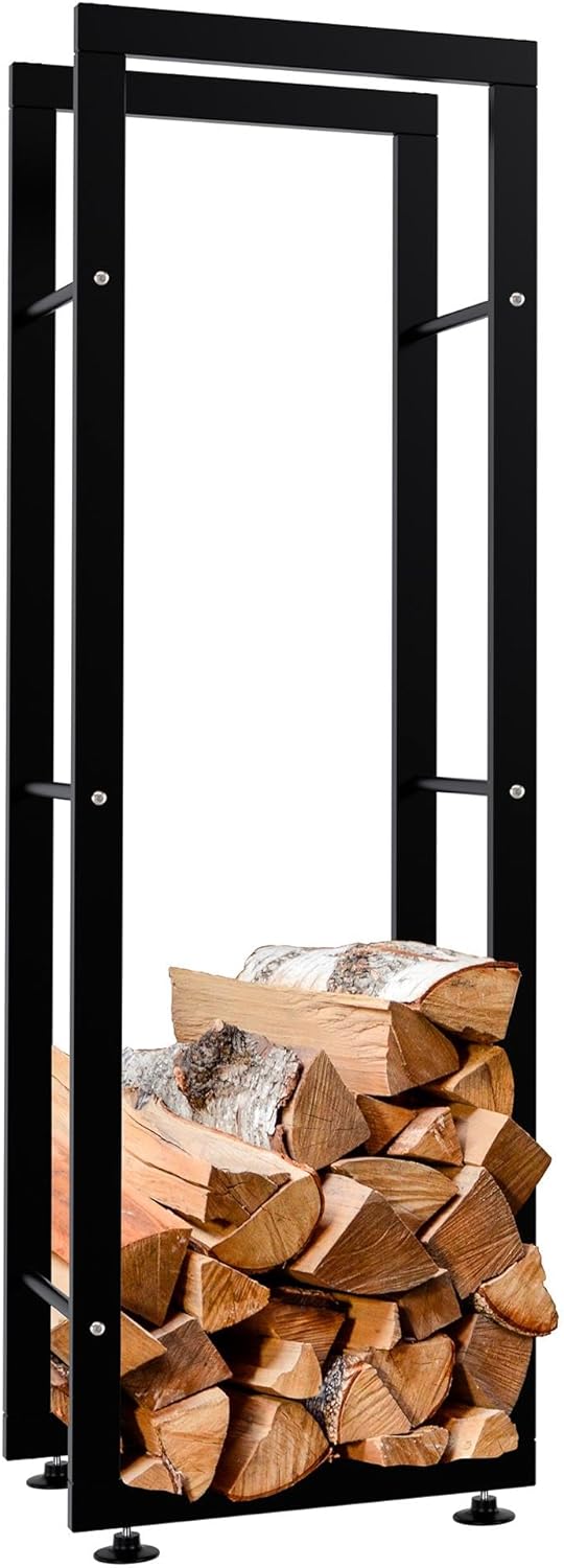 CLP Kaminholzständer Keri V2 I Aus Schwarzem Metall I Kaminholzregal Mit Bodenschonern I Stapelhilfe