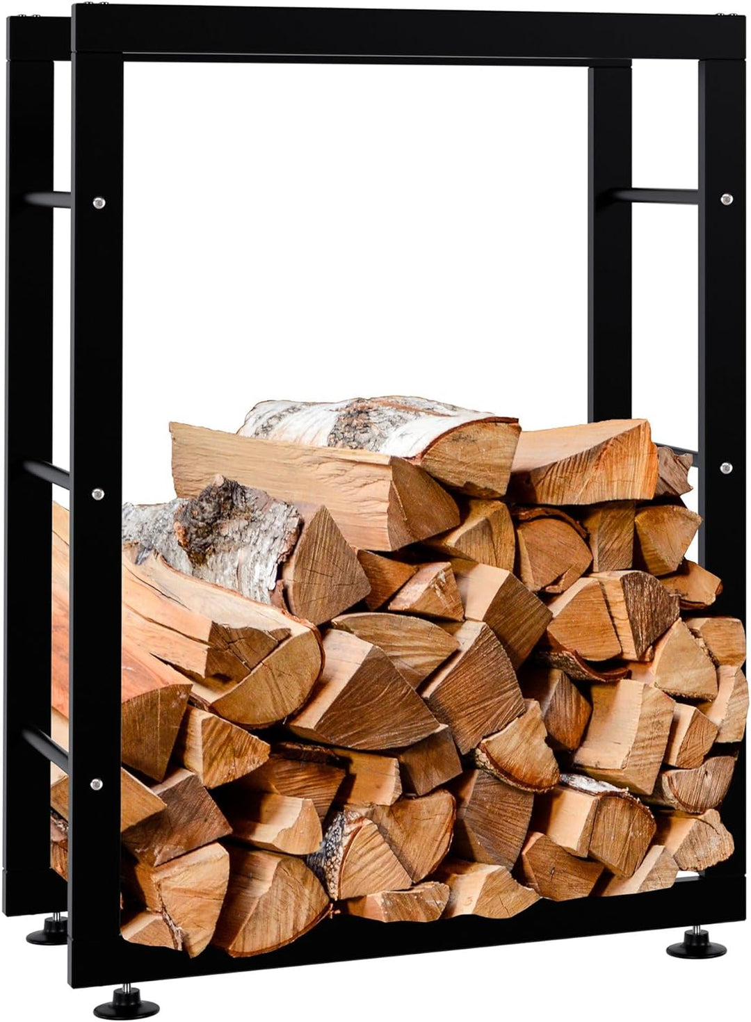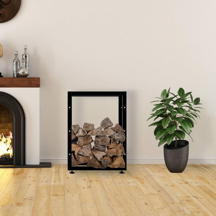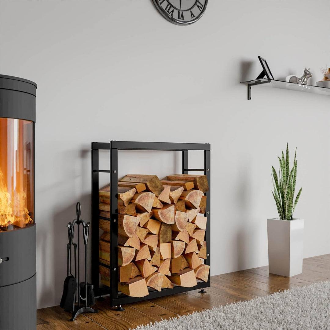 CLP Kaminholzständer Keri V2 I Aus Schwarzem Metall I Kaminholzregal Mit Bodenschonern I Stapelhilfe