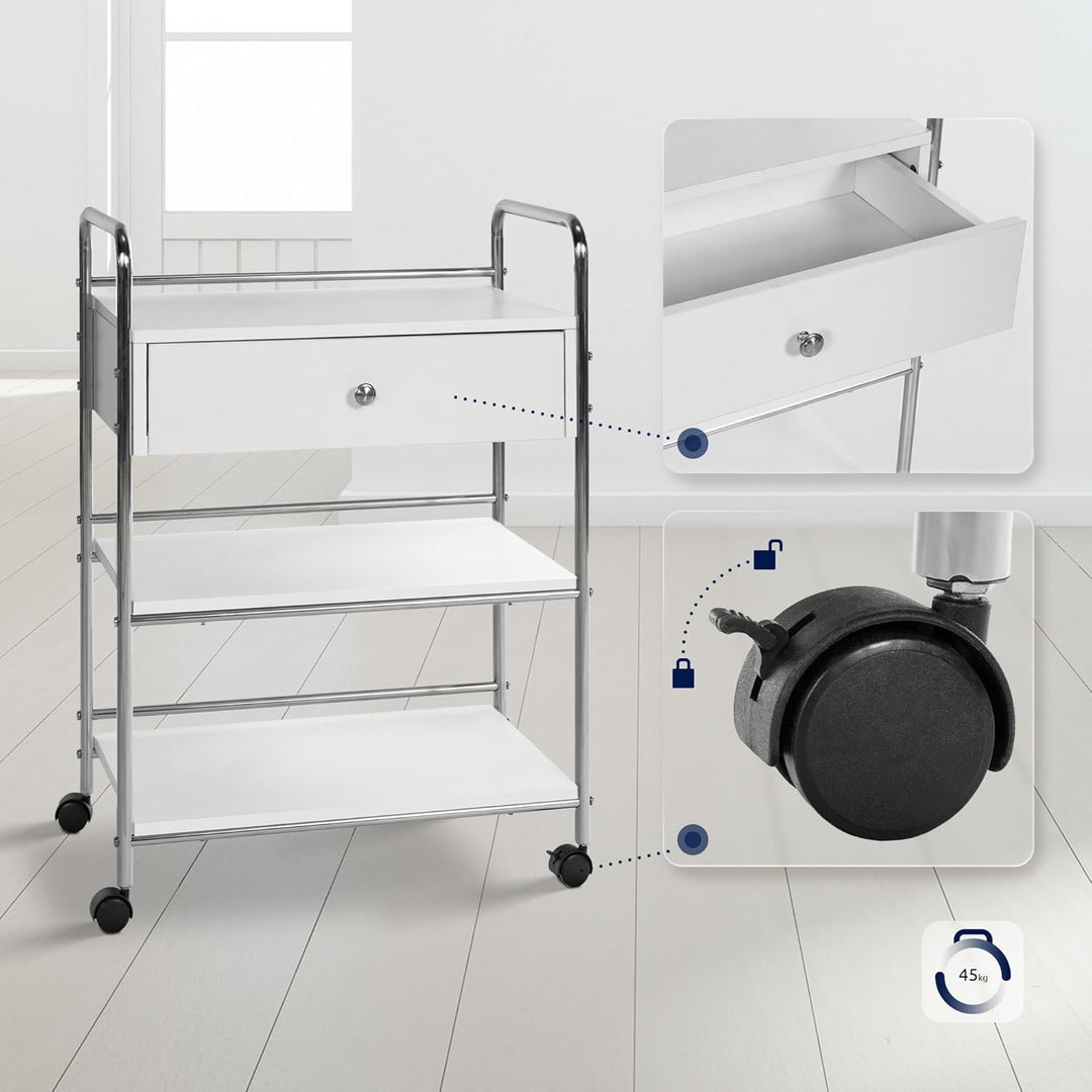 - Der kompakte Transportwagen ist sehr platzsparend und liefert Ihnen Ihre Gebrauchsgegenstände immer griffbereit. PL912 verfügt über zwei Ablagen und eine geräumige Schublade. Der Wagen ist in schwarz und in weiss erhältlich.