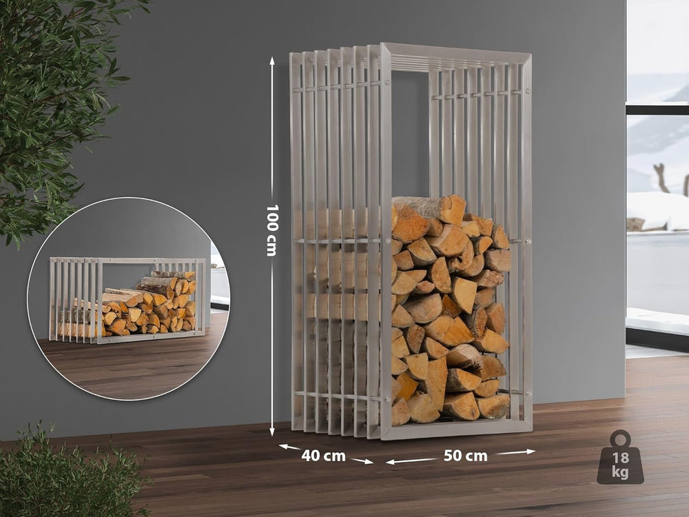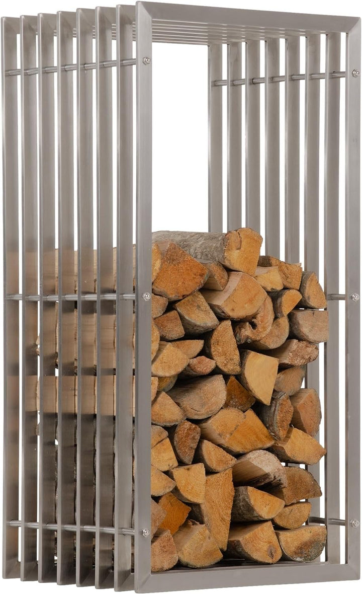 - Elegantes Edelstahl - Unser Kaminholzständer fügt sich nahtlos in jede Inneneinrichtung ein und verleiht jedem Raum eine edle Note.