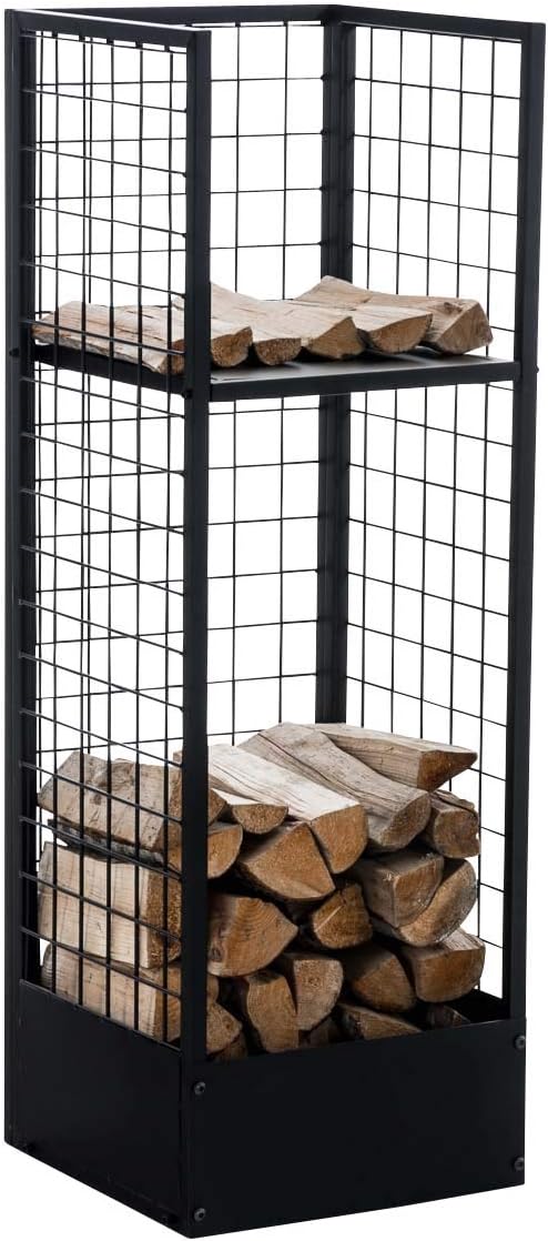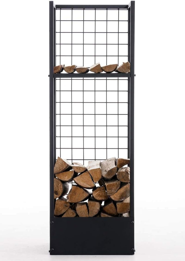 - Das Gestell ist aus schwarzem Metall gefertigt und sehr robust. Durch die schlichte Form und die neutrale Farbgebung lässt sich das Brennholzregal in nahezu alle Wohnräume integrieren.