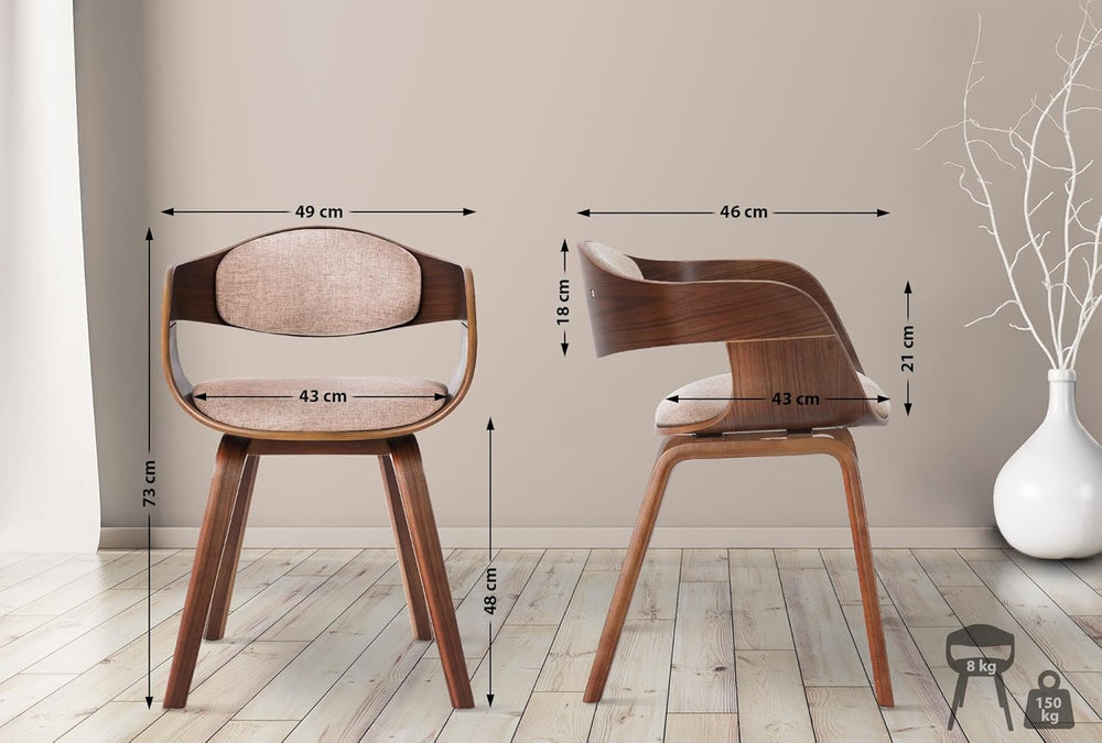 - Ca. Masse: Gesamthöhe: 73 cm | Gesamtbreite: 49 cm | Gesamttiefe: 46 cm | Sitzhöhe: 48 cm | Sitzfläche: 43 x 43 cm | Höhe Armlehne: 21 cm | Gewicht: 7 kg