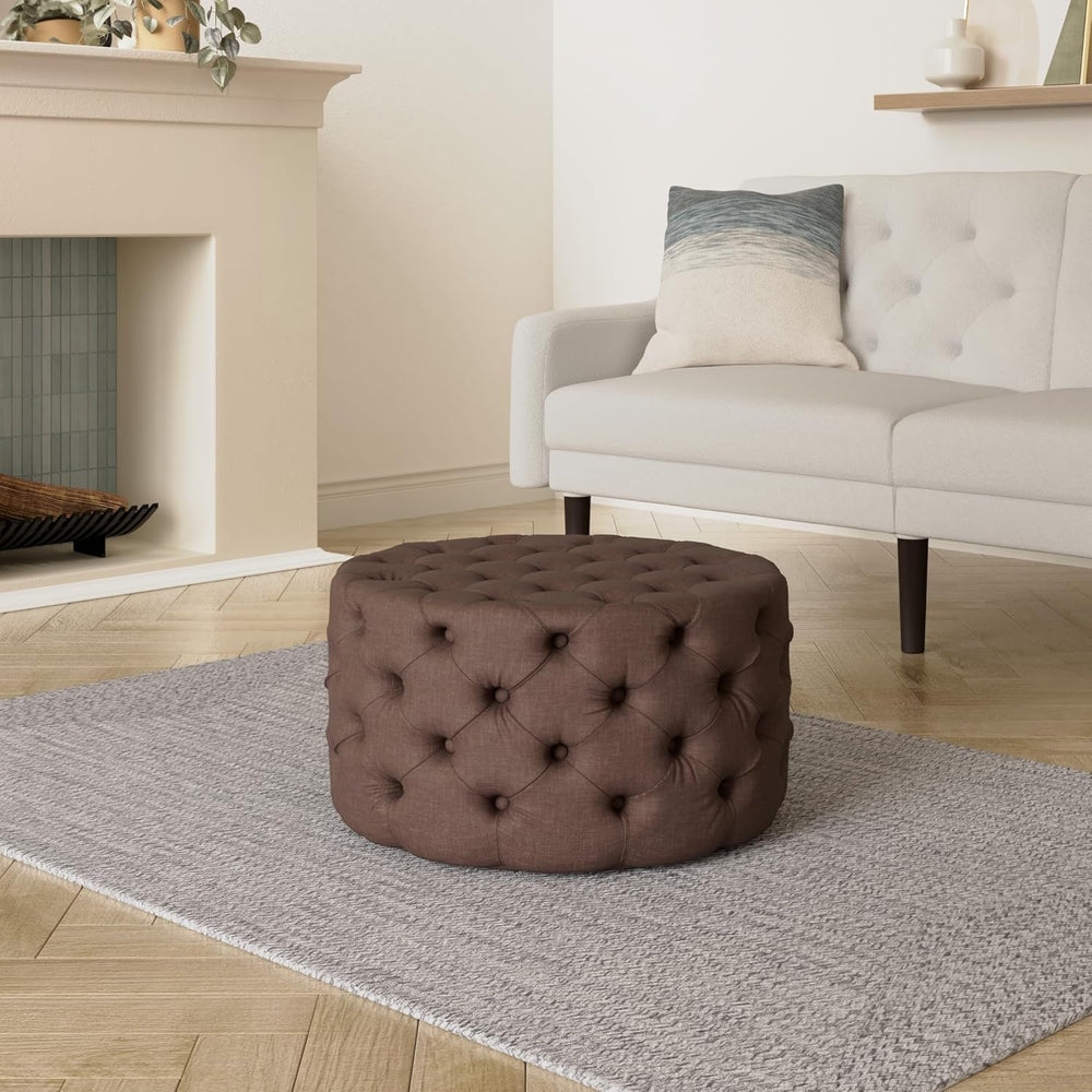- Vielseitig einsetzbarer Sitzhocker mit einem hochwertigen Stoffbezug und stilvollen Zierknöpfen im angesagten Chesterfield Design.
