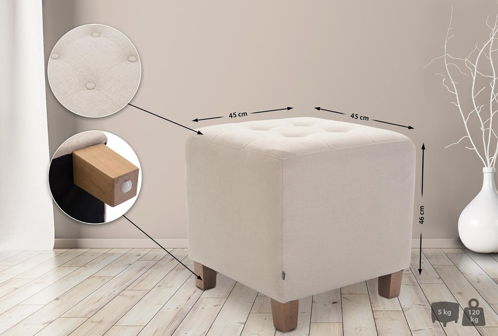- Dieser stabile und platzsparende Sitzhocker ist durch die hochwertige Polsterung besonders bequem. Auch nach längerem Sitzen fühlt sich die Oberfläche bequem an. Der Stoffbezug ist strapazierfähig und pflegeleicht.