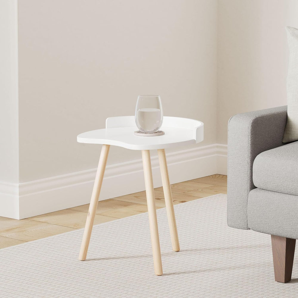 - Der nierenförmige Beistelltisch in Weiss und Naturholz sorgt mit der Tischkante und ausgestellten, konischen Beinen für ein beschwingtes Wohn- und Lebensgefühl.