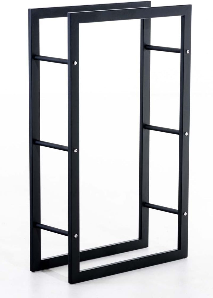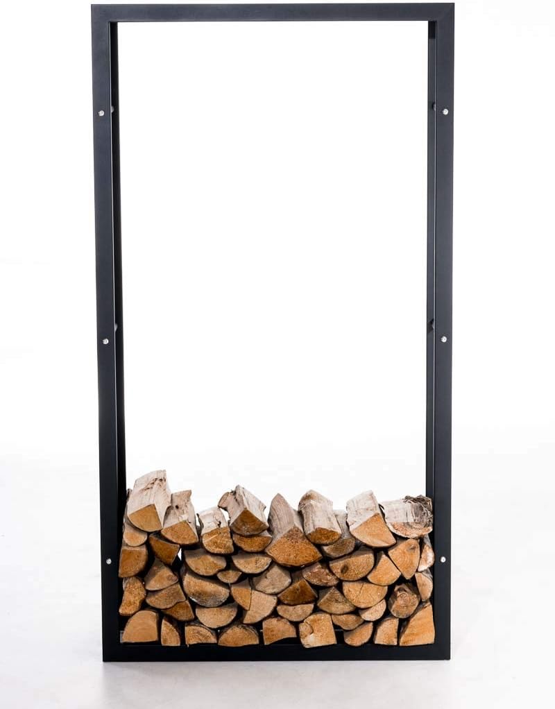 - Das Gestell ist aus schwarzem Metall gefertigt und sehr robust. Durch die schlichte Form und die neutrale Farbgebung lässt sich das Brennholzregal in nahezu alle Wohnräume integrieren.