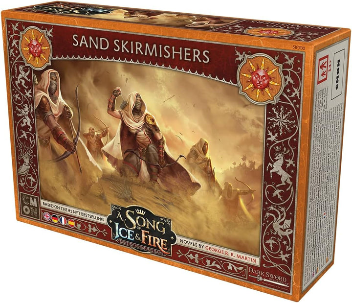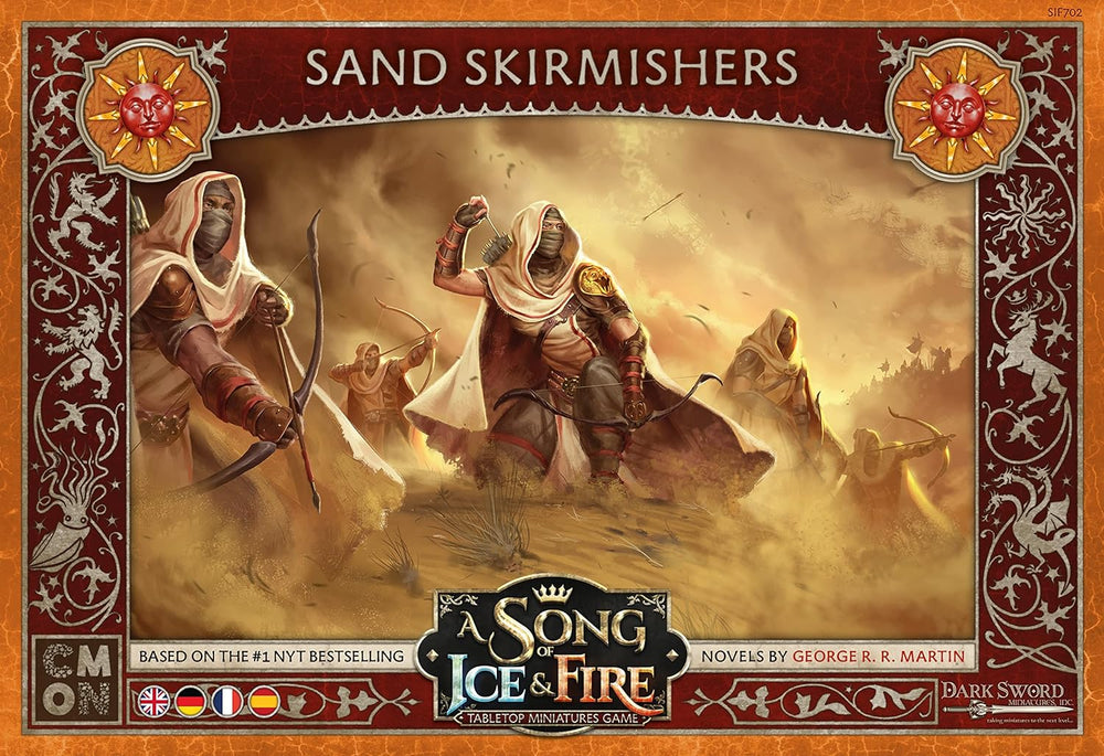 - Erweitere deine Armee für das kompetitive Tabletop „A Song of Ice and Fire“ um eine Einheit Sand-Plänkler. Dank der leichten Rüstung sind sie sehr wendig und lassen Pfeile auf Gegner niederprasseln