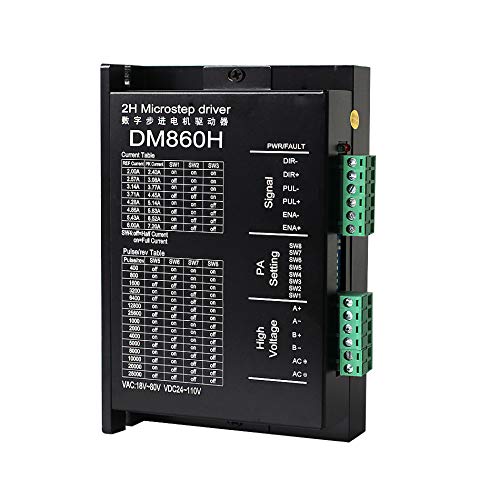 - Dieser DM860H ist mit einer Aluminiumabdeckung ausgestattet. Geeignet für Nema 23 und Nema34 Schrittmotor (2-Phasen-Hybrid-Schrittmotoren (Aussendurchmesser: 57,86 mm).