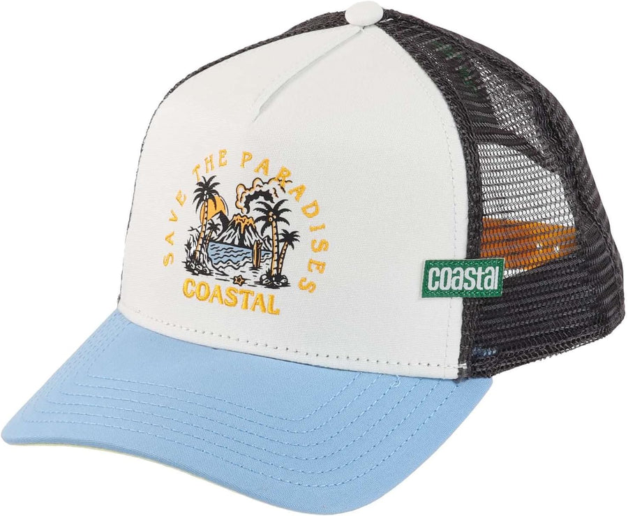PRODUKTBESCHREIBUNGEN Modell: Paradises WhiteEinheitsgrösse: hinten verstellbar durch Snapback-VerschlussSonnenschutz dank gebogenem SchirmAtmungsaktiv: Mesh-Einsatz auf der Rückseite„Save The Paradises" Stick auf der VorderseiteCoastal-Label seitlich an der Kappe und am VerschlussStylische Cap, die von vielen Stars in der Öffentlichkeit getragen wird.