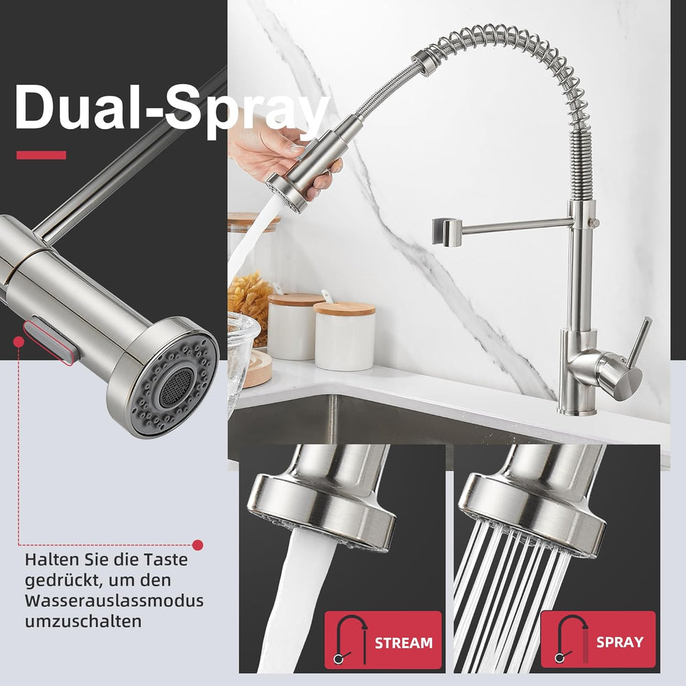 - Ausziehbar & Drehbar: Der Küchenhahn ist ausziehbar und schwenkbar, er ist viel flexibler und einfacher zu bedienen, wenn Sie die Richtung oder Intensität des Wasserflusses ändern müssen