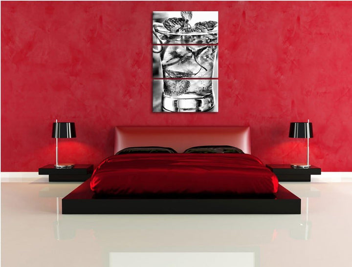 Cocktail mit Pfefferminz als Leinwandbild/Grösse: 3 Teilig (120x80) cm/Wandbild/Kunstdruck/fertig be