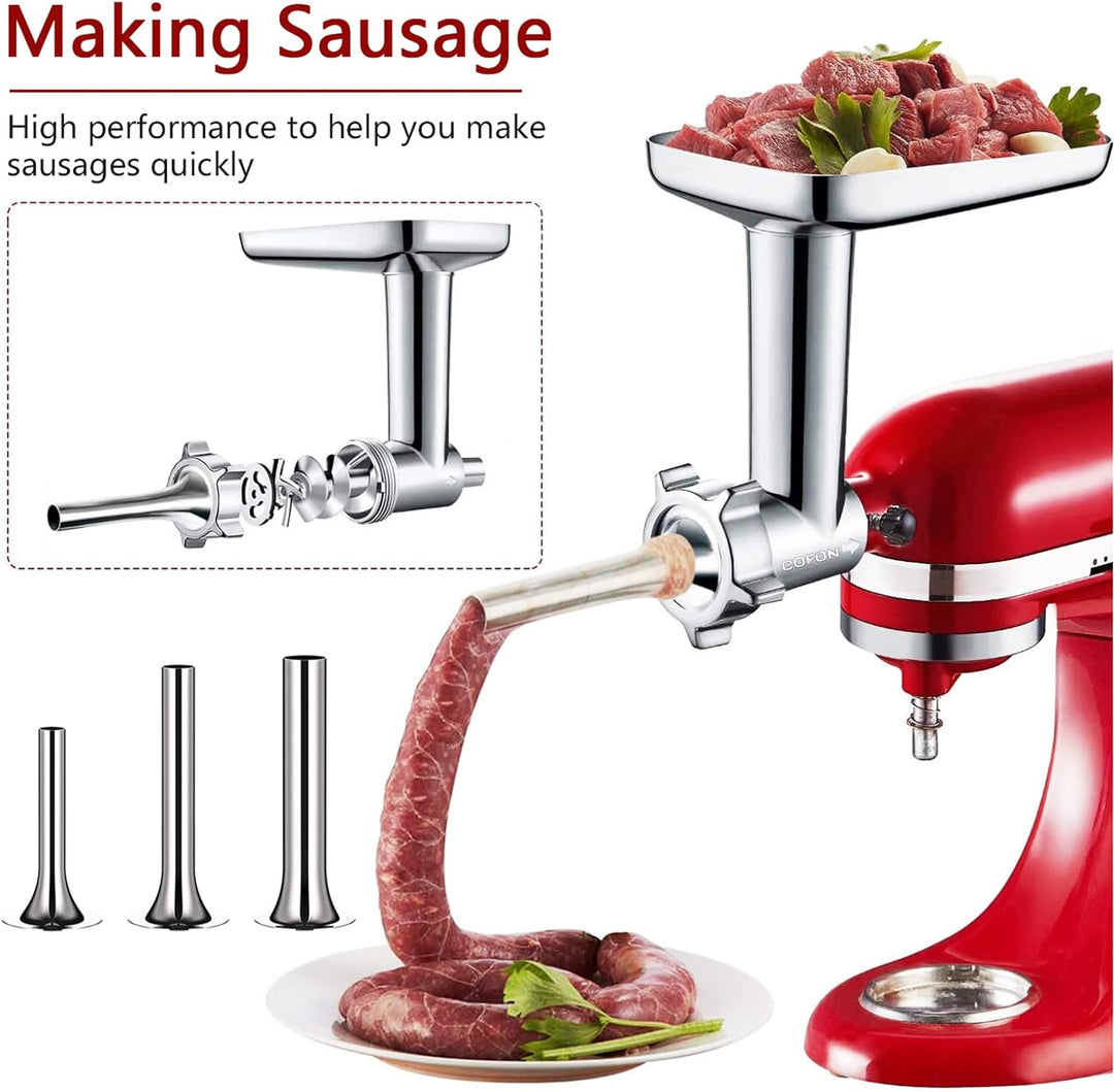 - 【Wurstfüllhörner Mit Kitchenaid Zubehör】-- Der kitchenaid fleischwolfaufsatz wird mit 3 verschiedenen Grössen von wurstfüllrohren geliefert, aus denen alle Arten von köstlichen würstchen hergestellt werden können. Einschliesslich boudinwurst, italienische wurst, sommerwurst, bratwurst & chorizo.