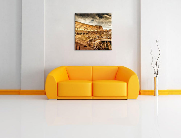 Colloseum in Rom von innen, Format: 70x70 auf Leinwand, XXL riesige Bilder fertig gerahmt mit Keilra