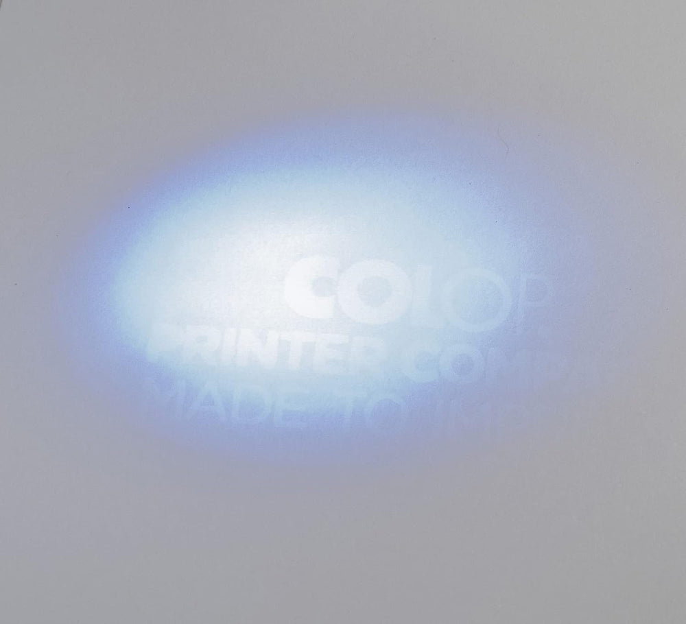 - Der Abdruck ist unter einer UV-Lampe mit einer Wellenlänge von 365-385nm sichtbar und leuchtet gelblich.