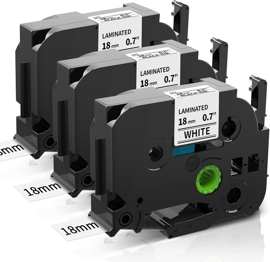 - Was Sie erhalten: 3x Kompatibel für brother ptouch tze-241 18mm schriftband /Ersatz für Brother tape cassette tze 18mm 0.7 laminated. Farbe: schwarz auf weiss/ black on white; Grösse: 18mm x 8m