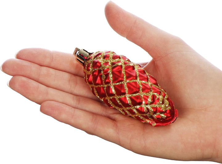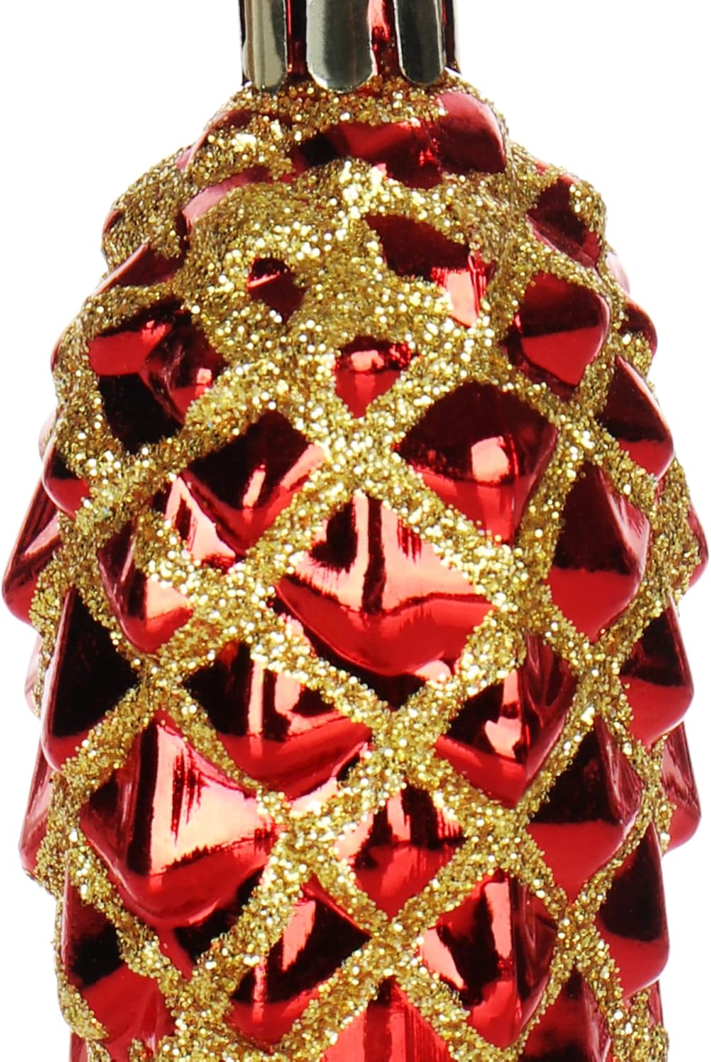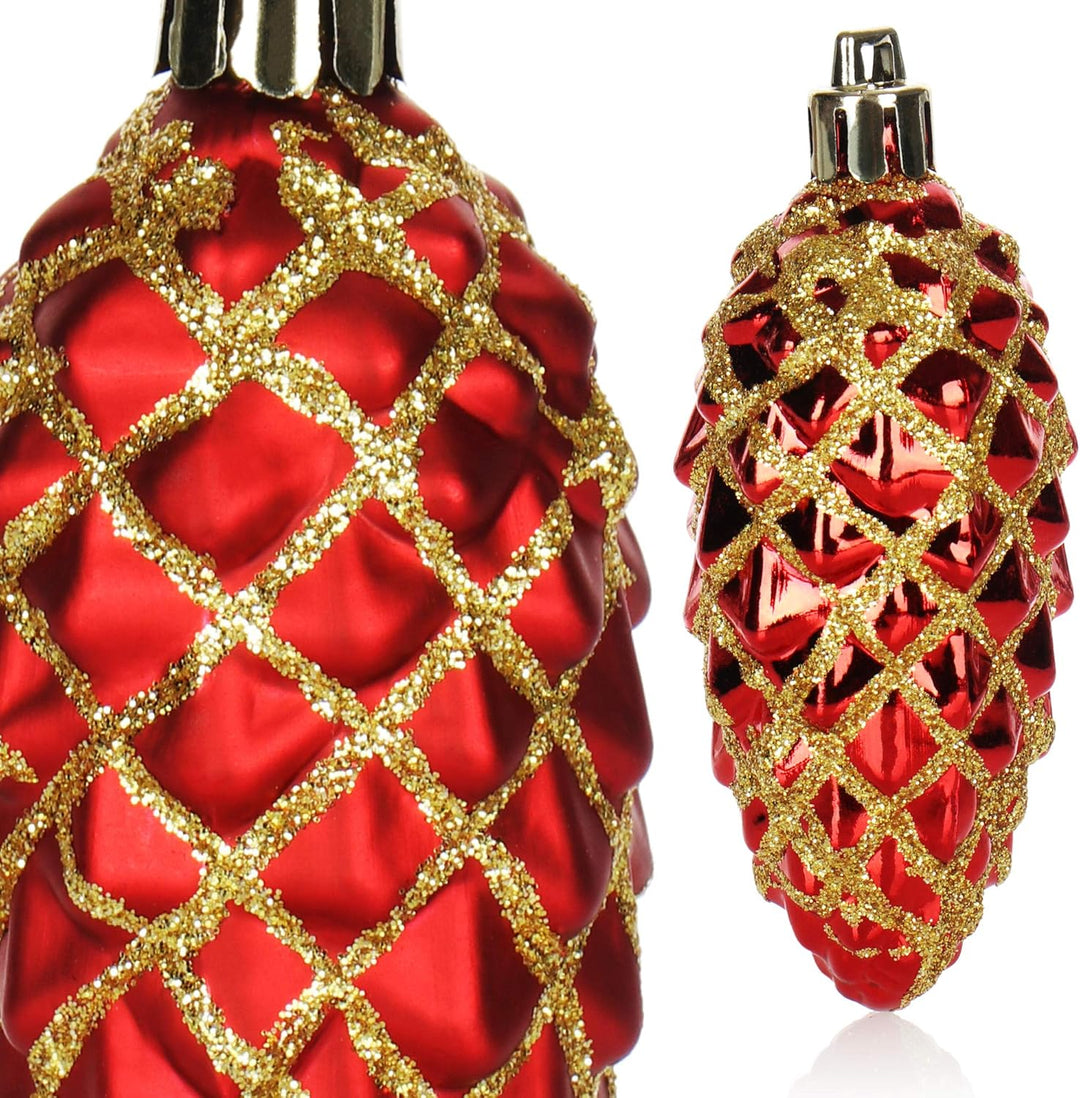 • LIEFERUMFANG: 12x Zapfen-Anhänger // Masse: ca. 9 x 3,5 cm // Material: Kunststoff // Farbe: rot, goldfarben