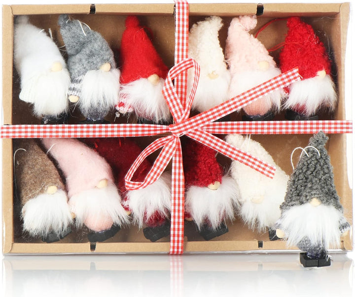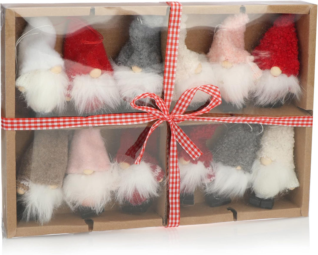 - LIEFERUMFANG: 12x Weihnachtsanhänger (mit Anhänger in komfortabler Schachtel) // Farbe: braun, rosa, grau, rot, dunkelrot, weiss // Material: Gewebemix, Kunststoff // Masse (BxHxT): 5 x 9 x 5 cm