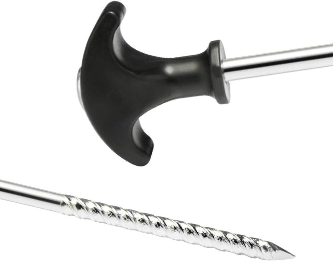 • BESONDERS STABIL: Durch das T-Griffstück an der Oberseite lassen sich die aus robustem Stahl bestehenden Bodenanker mit einem Handgriff leicht aus jedem Boden herausziehen!