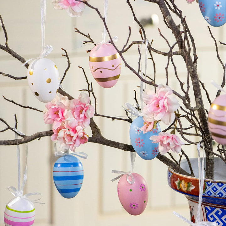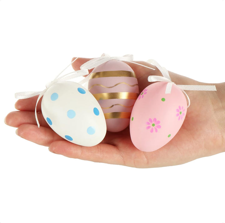 - PRAKTISCH: Die Ostereier aus Kunststoff können dank des Seidenbandes ganz leicht an Bäumen und Sträuchern aufgehängt werden!