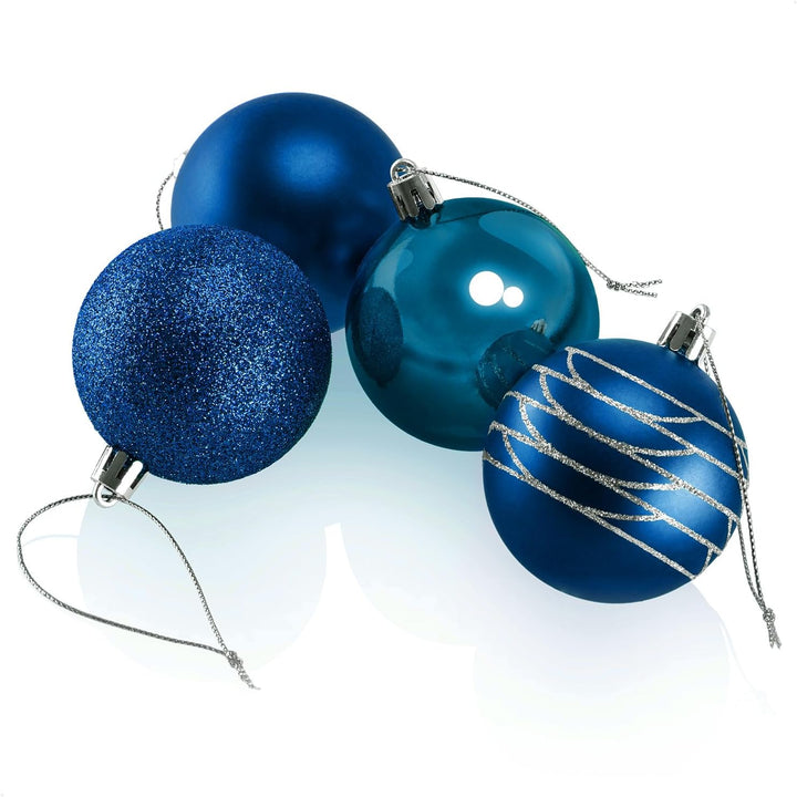 - DESIGN: Christbaumkugeln in verschiedenen Designs mit silberfarbenem Glitzer verziert, dies sorgt für eine besonders intensive und brillante Farbgebung!