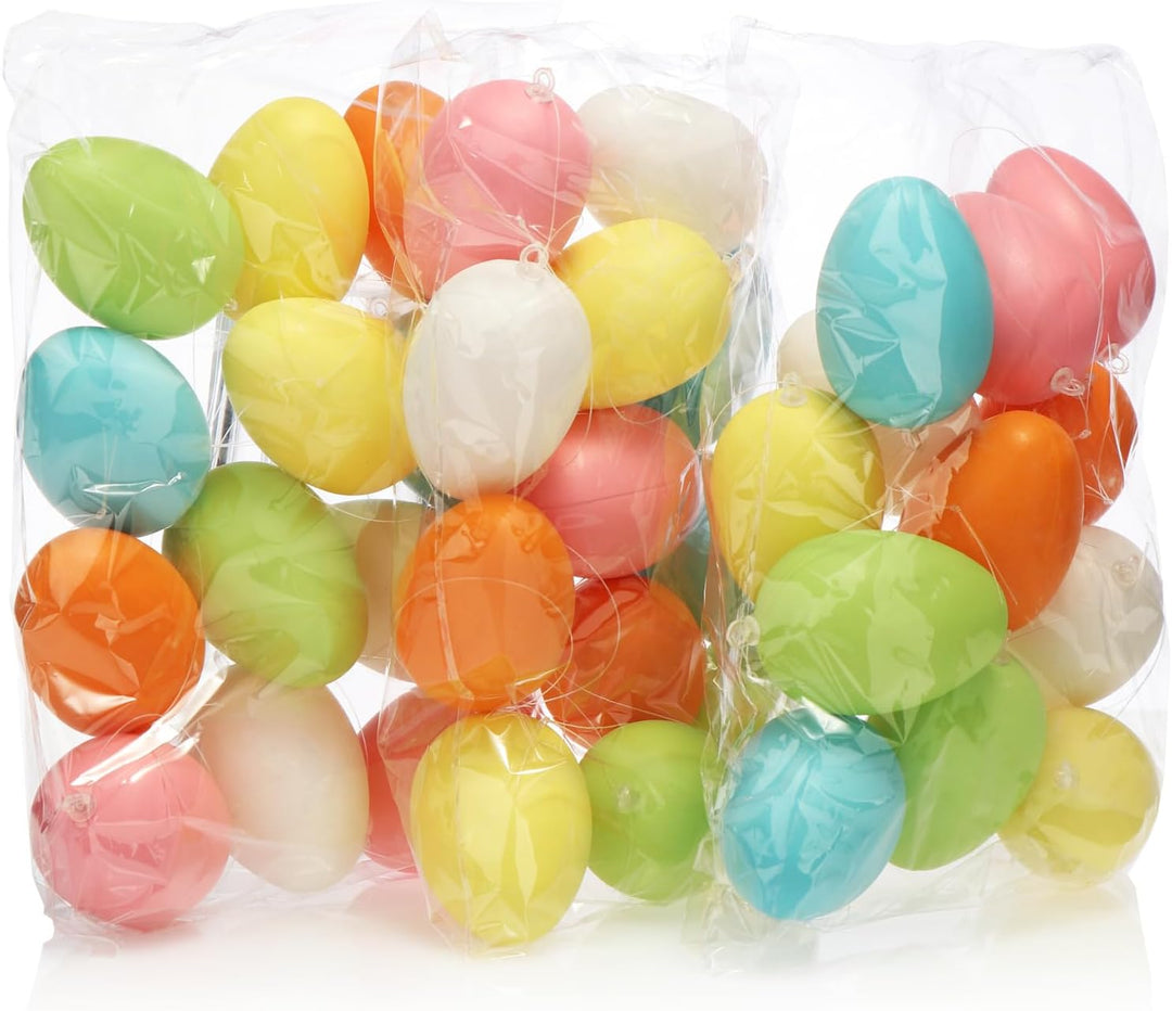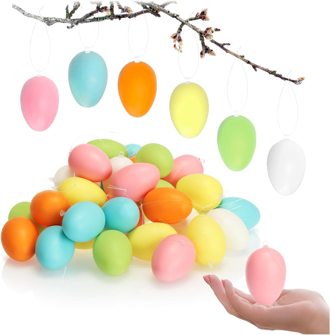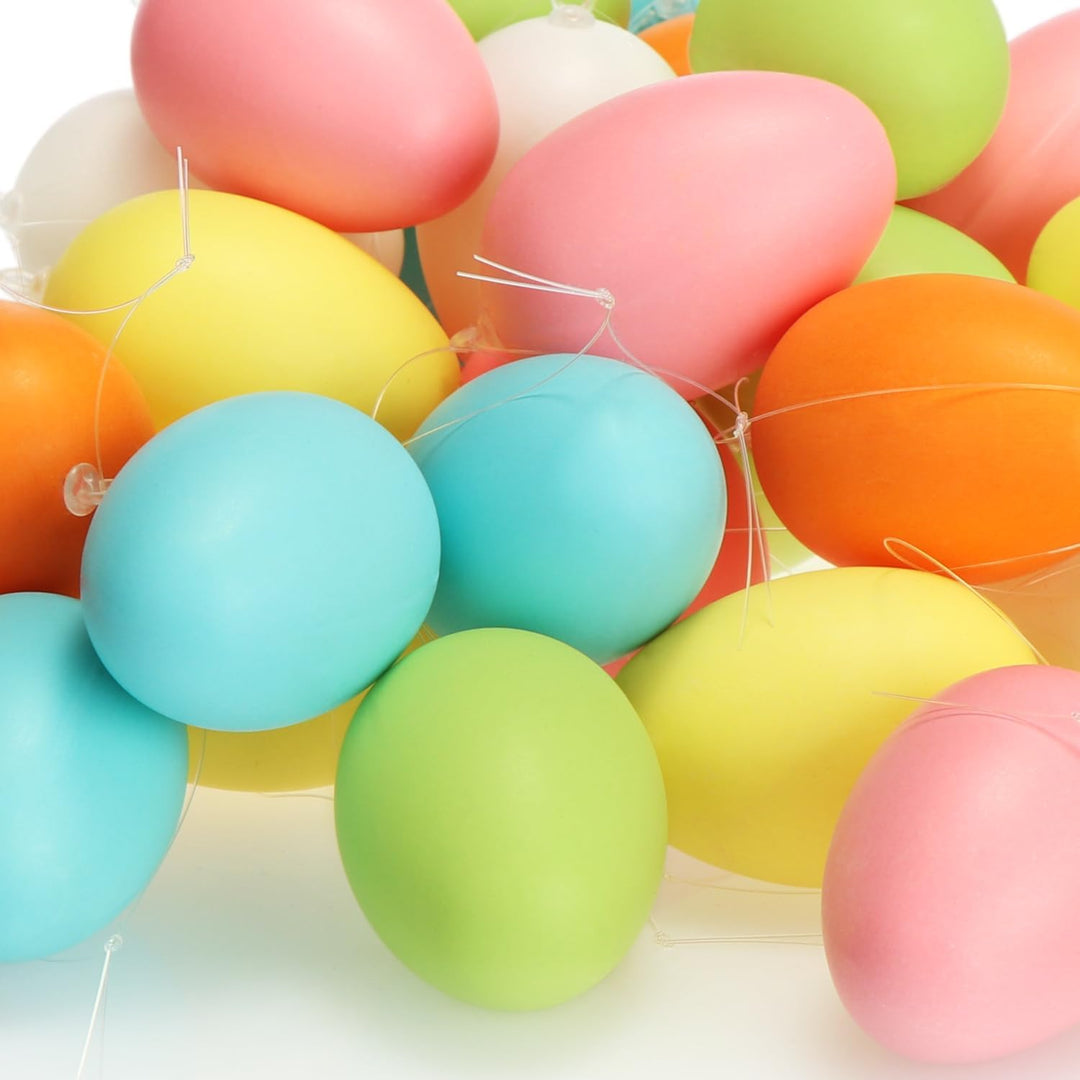 - LIEFERUMFANG: 36x Ostereier (6x je Farbe) // Material: Kunststoff // Masse: ca. 6 x 4 cm // Farben: weiss, gelb, rosa, orange, grün, hellblau