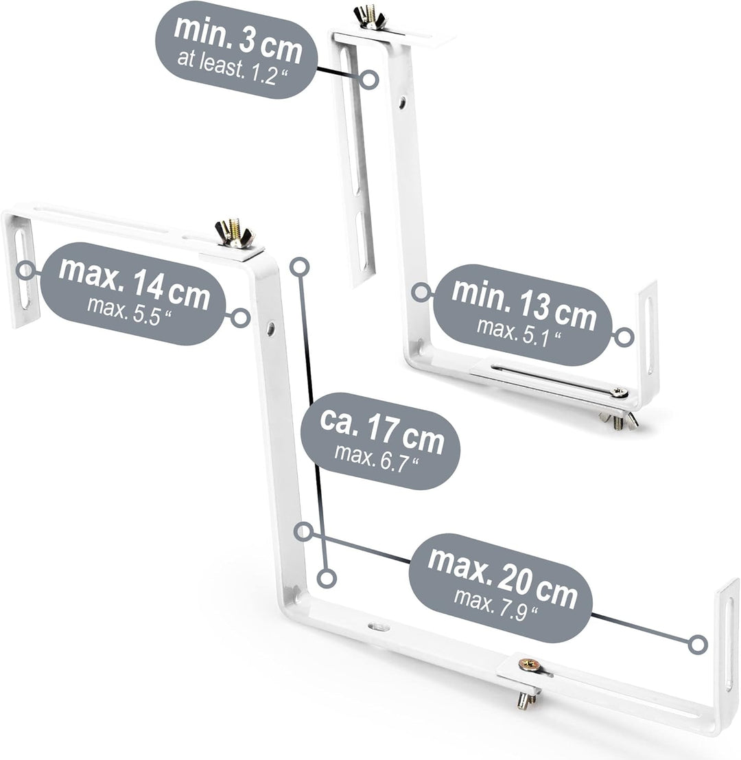 - EINFACHE ANWENDUNG: Der Blumenträger ist doppelt verstellbar, kann dank der Schrauben auf die individuelle Breite eingestellt und an viele Pflanzkästen und Balustraden angepasst werden!