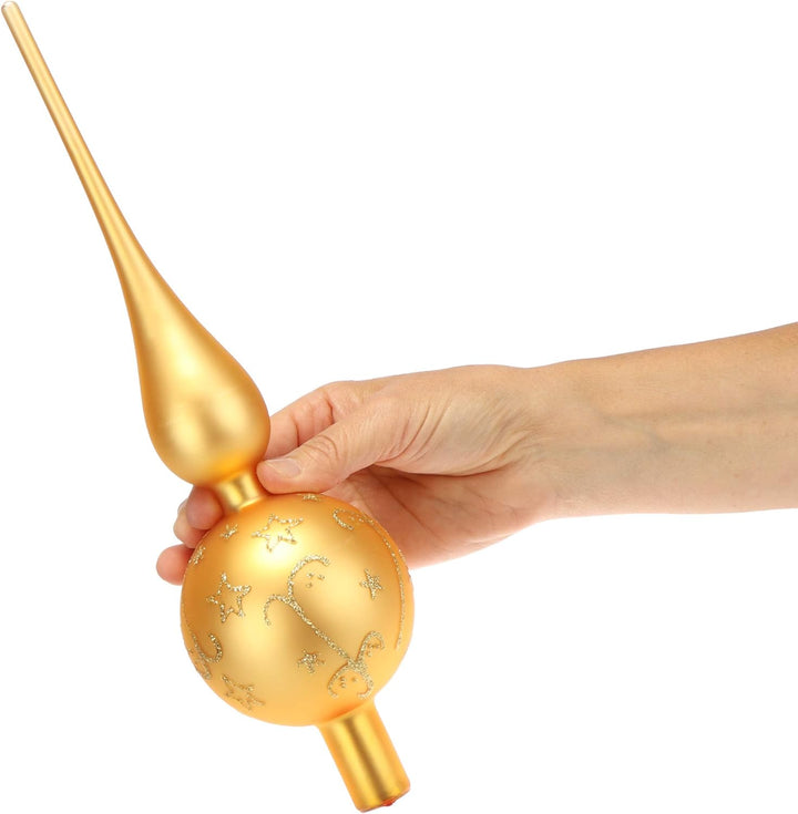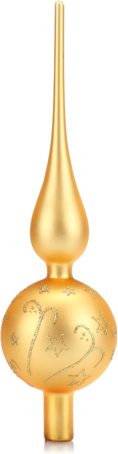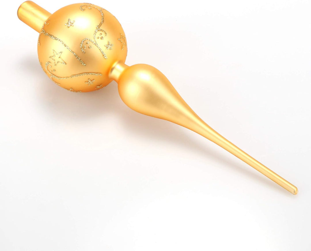 - LIEFERUMFANG: 1x Weihnachtsbaumspitze // Masse: 32 cm hoch // Lochgrösse: ca. Ø 1,5 cm // Material: Glas // Farbe: goldfarben