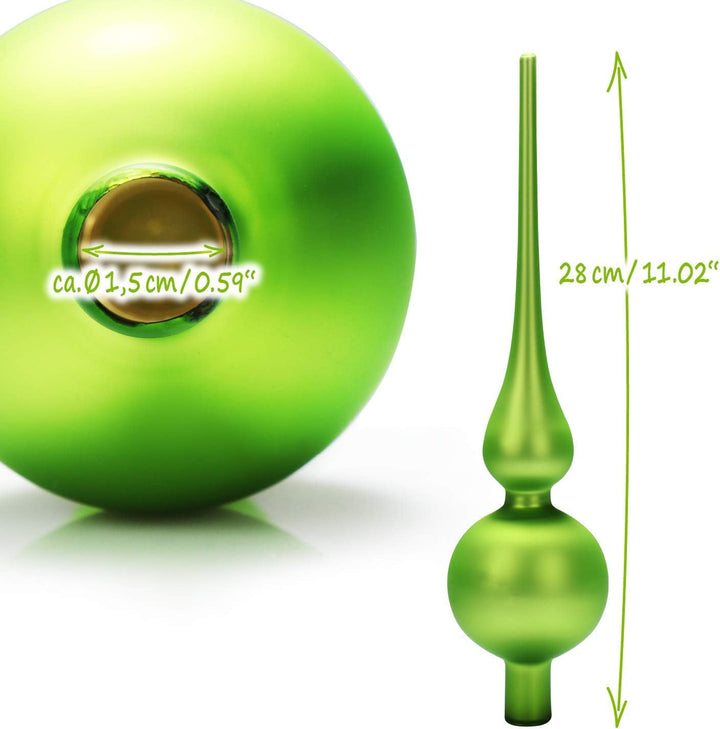 - LIEFERUMFANG: 1x Weihnachtsbaumspitze // Masse: 28 cm hoch // Lochgrösse: ca. Ø 1,5 cm // Material: Glas // Farbe: apfelgrün matt