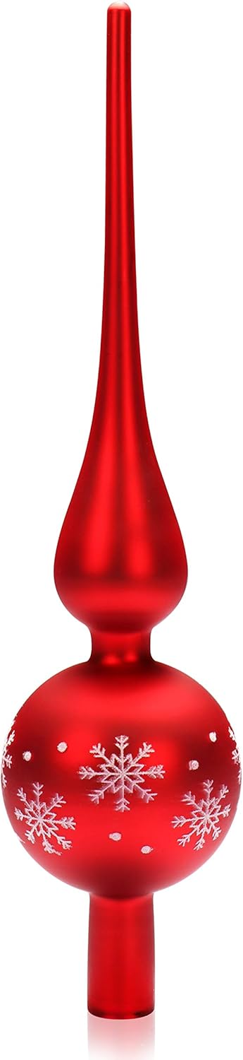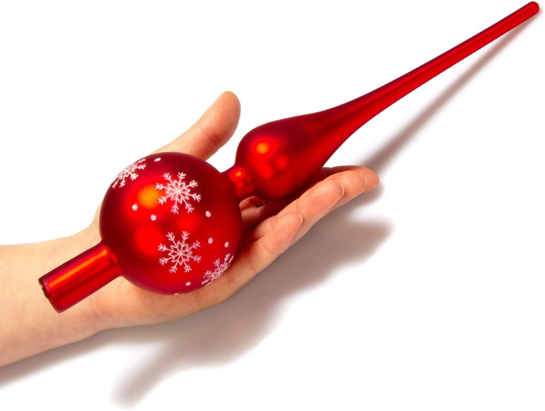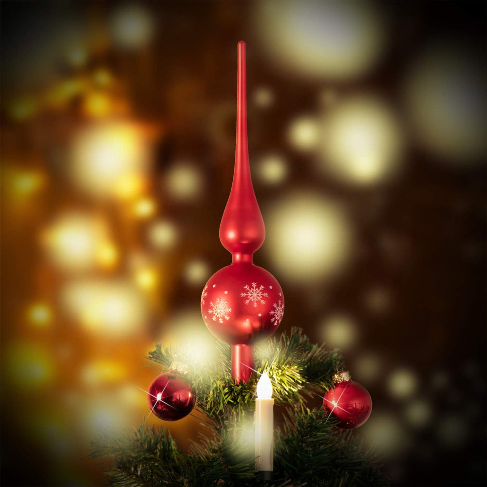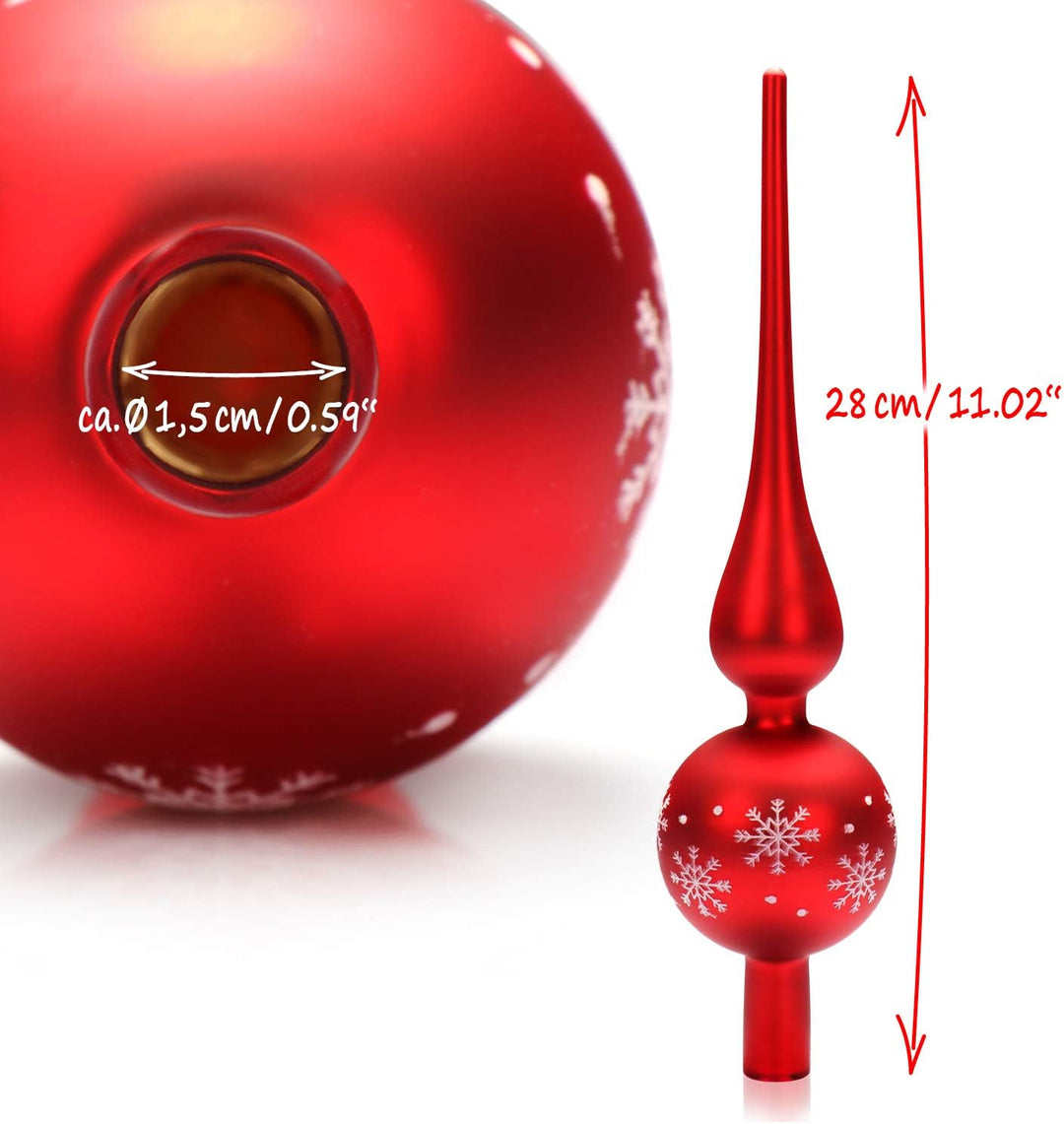 - LIEFERUMFANG: 1x Weihnachtsbaumspitze // Masse: 28 cm hoch // Lochgrösse: ca. Ø 1,5 cm // Material: Glas // Farbe: rot matt, weiss