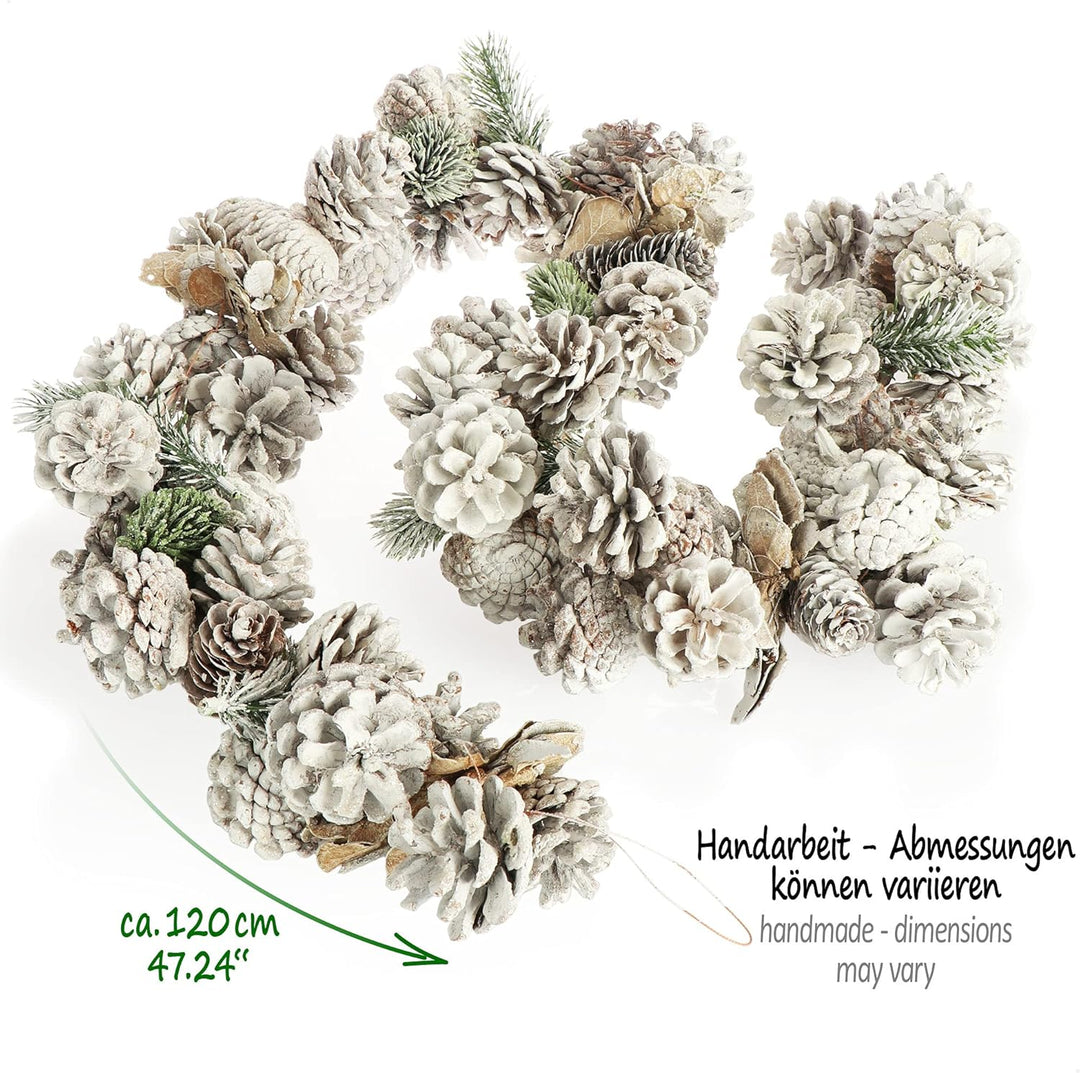 - LIEFERUMFANG: 1x Weihnachtsgirlande // Länge: ca. 120 cm // Material: verschiedene Zapfen, Holz, Metall, Kunststoff // Farbe: weiss, grün, silberfarben