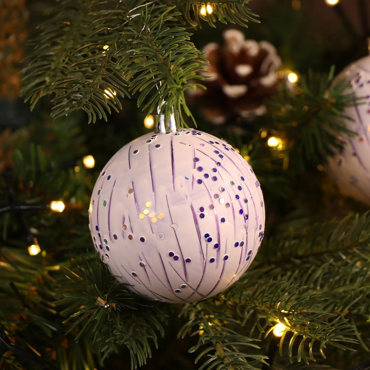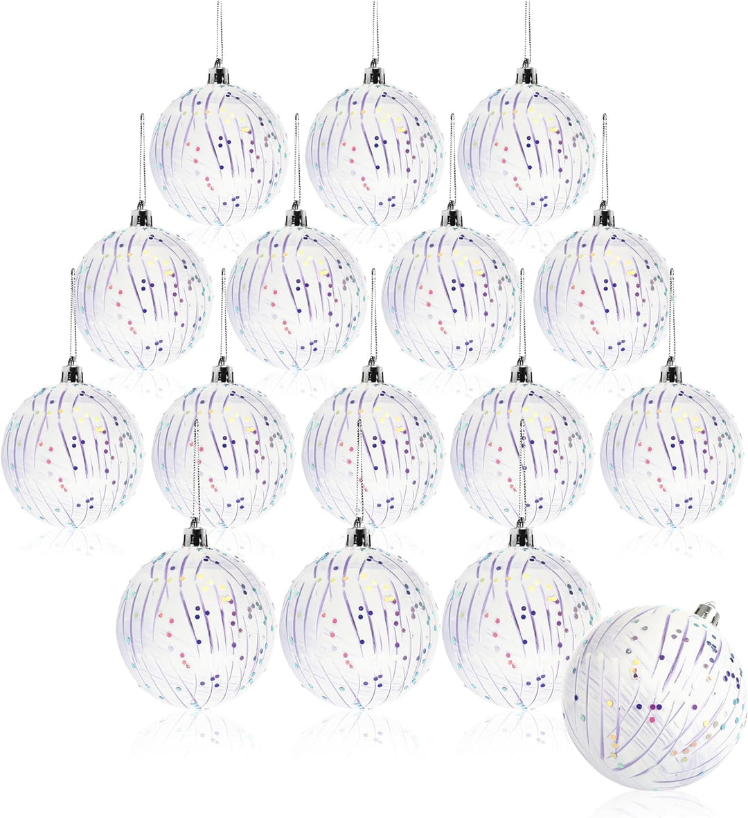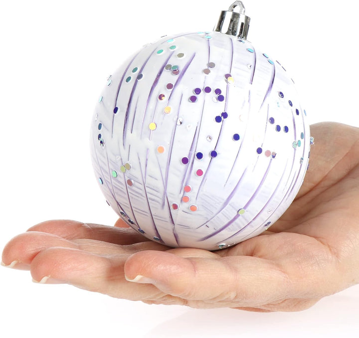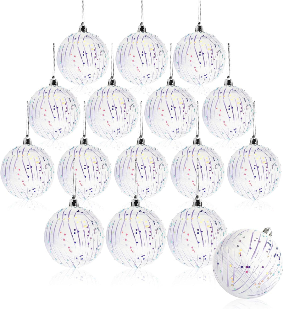 - LIEFERUMFANG: 16x Kugeln // Material: Kunststoff // Masse: ca. 8 cm Ø // Farbe: weiss - mit Pailletten
