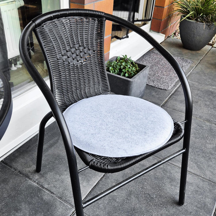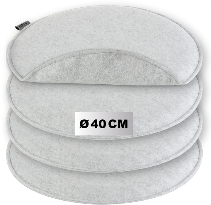- LIEFERUMFANG: 4x Sitzkissen // Material: 100% Polyester (Filz) // Masse: ca. 40 x 2,5 cm (Durchmesser x Höhe) // Farbe: grau
