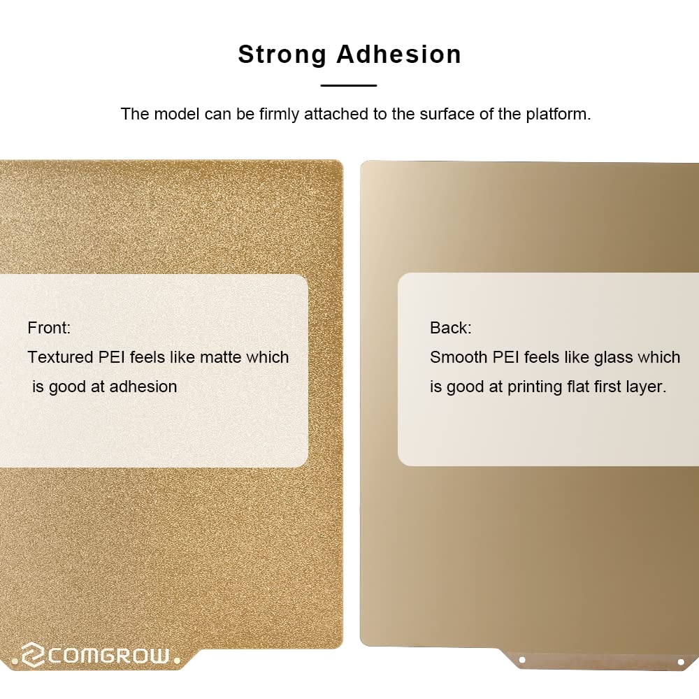 - 【Einfache Installation】 Die Ender 3 V2 PEI-Folie besteht aus 2 Teilen, einer flexiblen Stahlplattform mit strukturierter PEI-Oberfläche auf der einen Seite, glattem PEI auf der anderen Seite und einer magnetischen Bodenfolie mit Klebstoff auf der