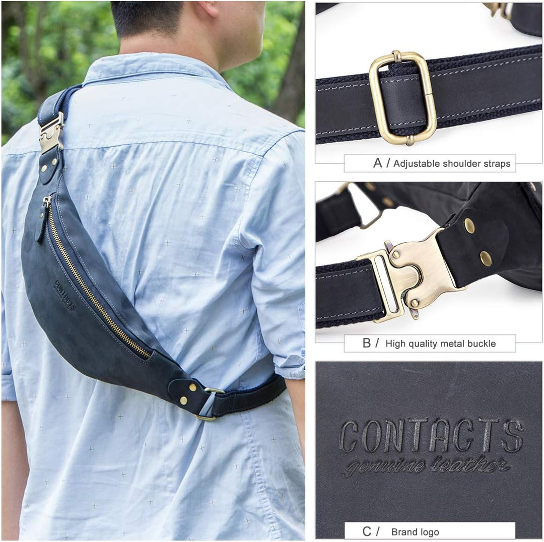 - ✔ 100% echtes Leder: CONTACTS Hüfttasche aus echtem Leder, weich und bequem, wasserdicht, verschleissfest. Hochwertige Nähtechnik mit feinem Reissverschluss, elegant und langlebig.