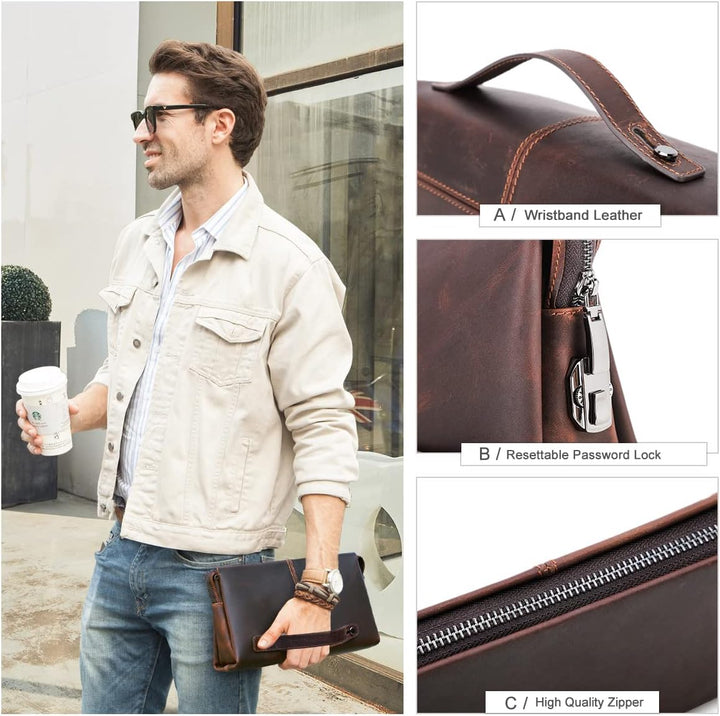 - ①【Masse (L x B x H)】: ✔ Messen Sie 25,3 x 7,7 x 15 cm; Gewicht: 360 g, Herren-Clutch in perfekter Grösse, bequem in der Hand zu halten oder in Ihrem Gepäck oder Koffer zu verstauen, halten Sie alle Ihre Telefone und kleinen Gegenstände gut