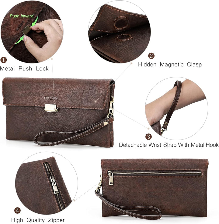 - Die Men Purse-Tasche besteht aus Nubukleder und das Futter aus Polyester. Es kann sowohl für geschäftliche als auch für ungezwungene Anlässe verwendet werden.