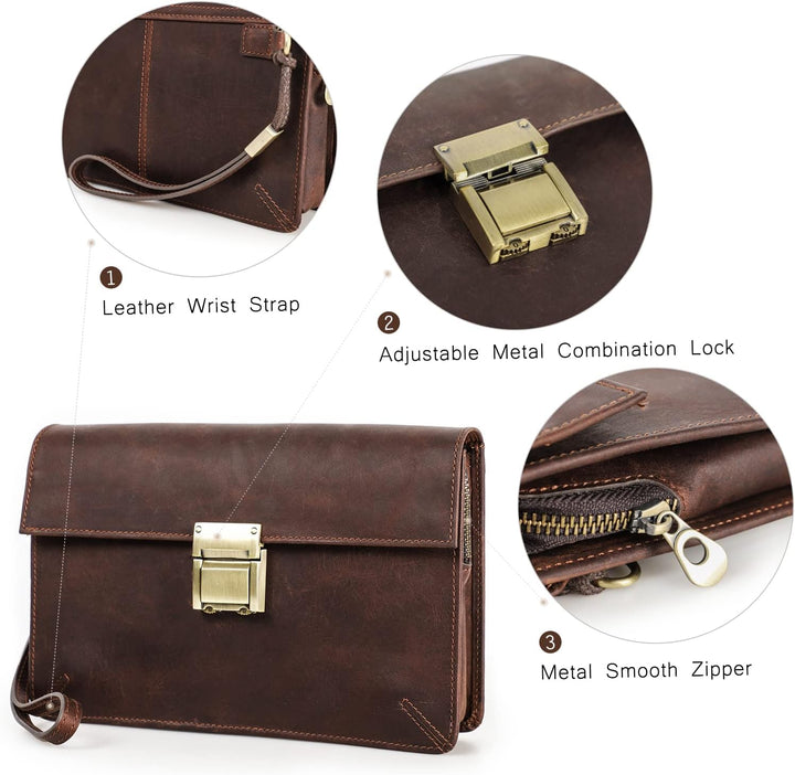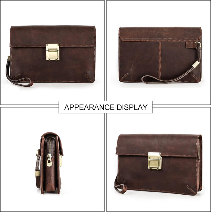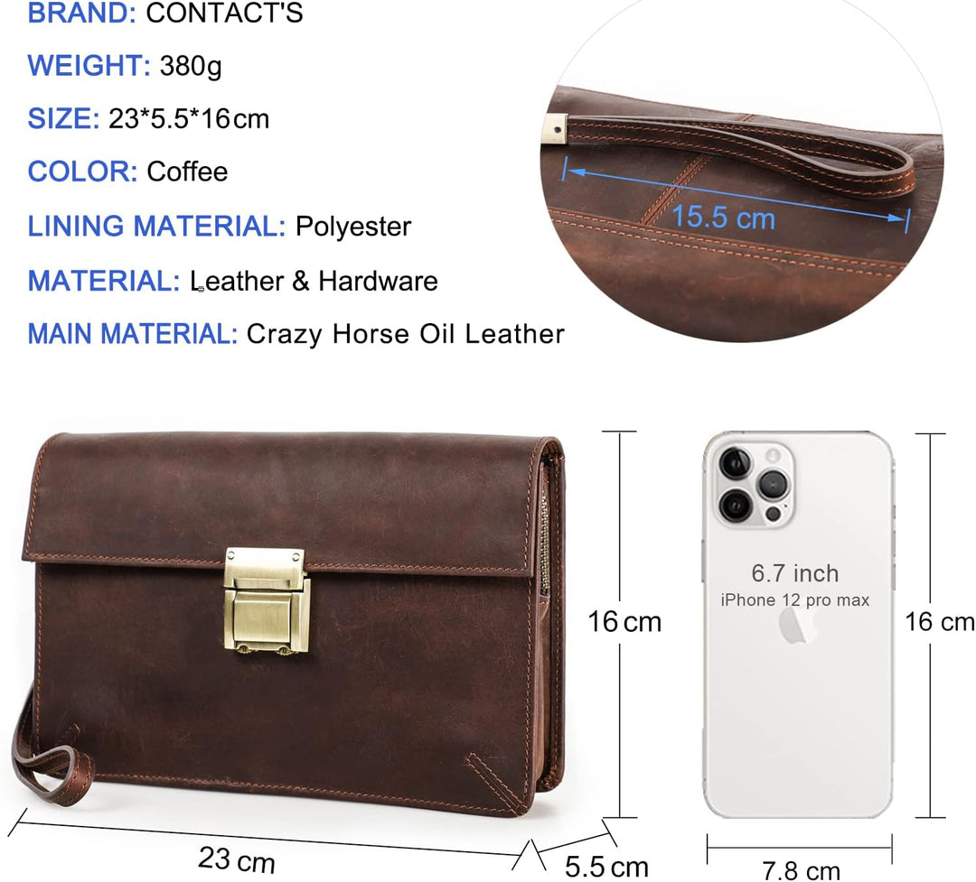 - ①【Masse (L x B x H)】: ✔ Messen Sie 23 x 5.5 x 16 cm; Gewicht: 380 g, Herren-Clutch in perfekter Grösse, bequem in der Hand zu halten oder in Ihrem Gepäck oder Koffer zu verstauen, halten Sie alle Ihre Telefone und kleinen Gegenstände gut