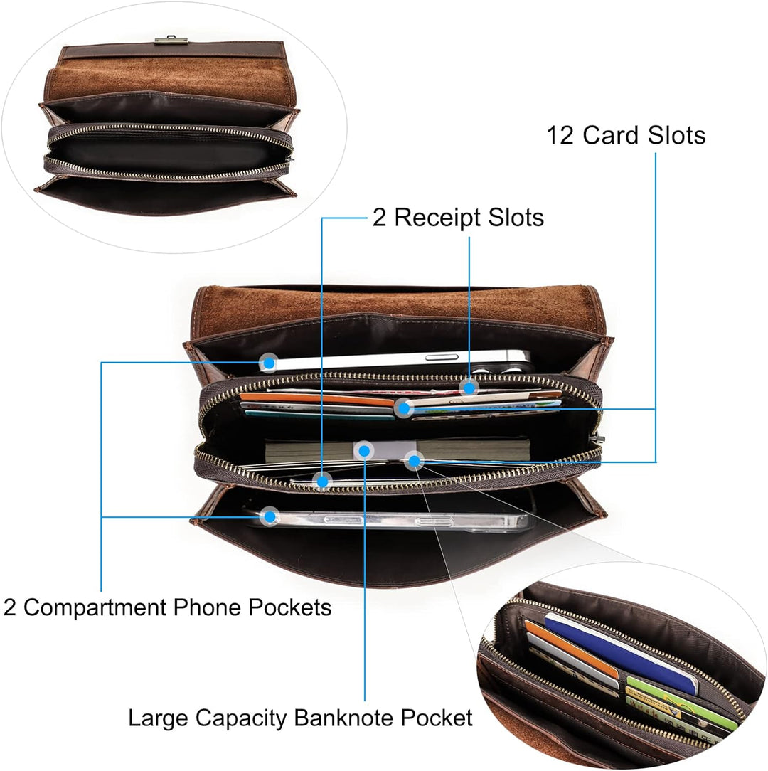 - ④【High-End-Qualität】: ✔Diese Geldbörse besteht aus 100% echtem Rindsleder, präzise Nähtechnik und dicke Metallreissverschlüsse machen die Clutch solide und langlebig.